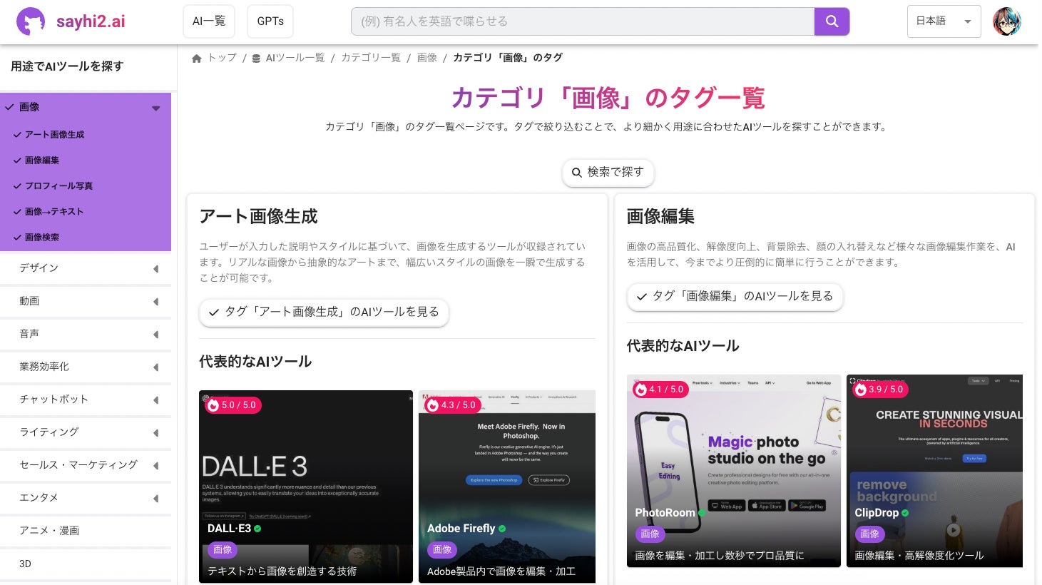 「sayhi2.ai ( https://sayhi2.ai/ja )」は、世界中に存在しているAIツールの中から、自身に最適なツールを探すことのできる、国内最大規模を誇るメディアです。