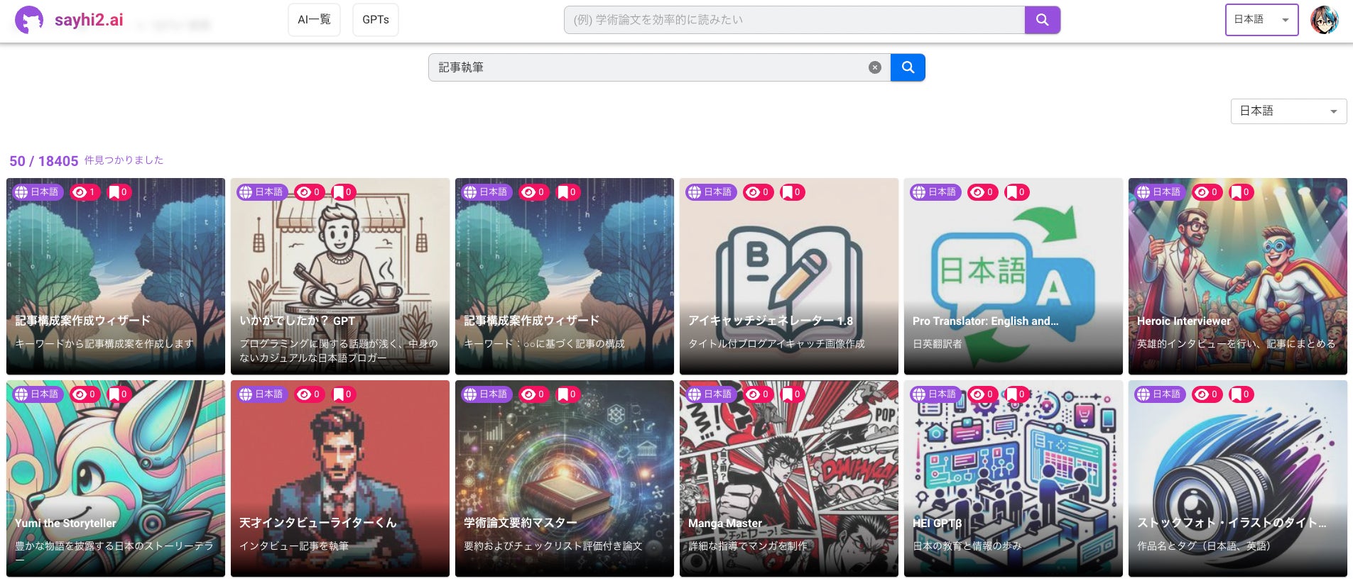 国内最大の生成AIメディア「sayhi2.ai」が18000超のカスタムチャットボット「GPTs」を掲載開始