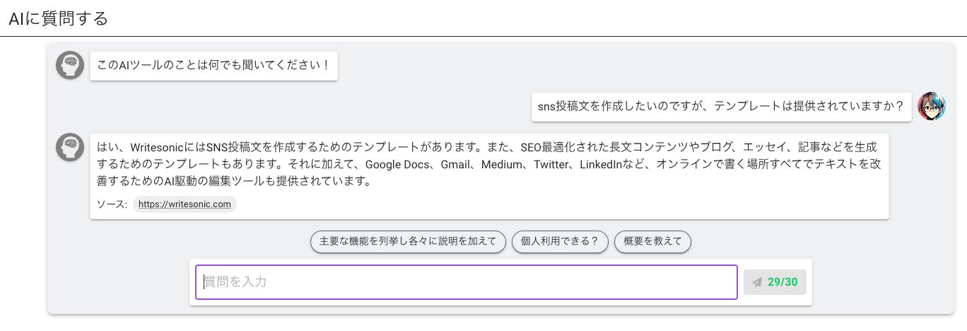 「sayhi2.ai」にはチャットボットが搭載されており、自分自身の切り口でツールについて質問することができます。回答にはリンクが付与されるため、内容の信頼性も容易にチェック可能です。