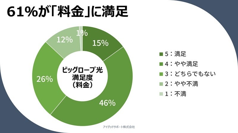 61%がビッグローブ光の「料金」に満足