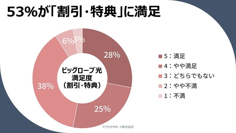 53%がビッグローブ光の「割引・特典」に満足