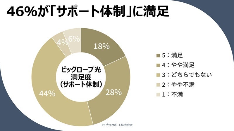 46%がビッグローブ光の「サポート体制」に満足