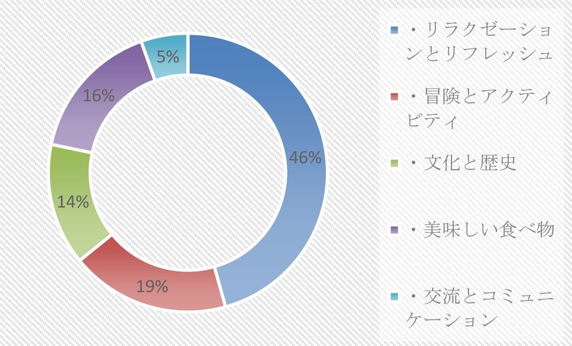 「リラクゼーションやリフレッシュ」が46%で、その他の項目はおおよそ均等。