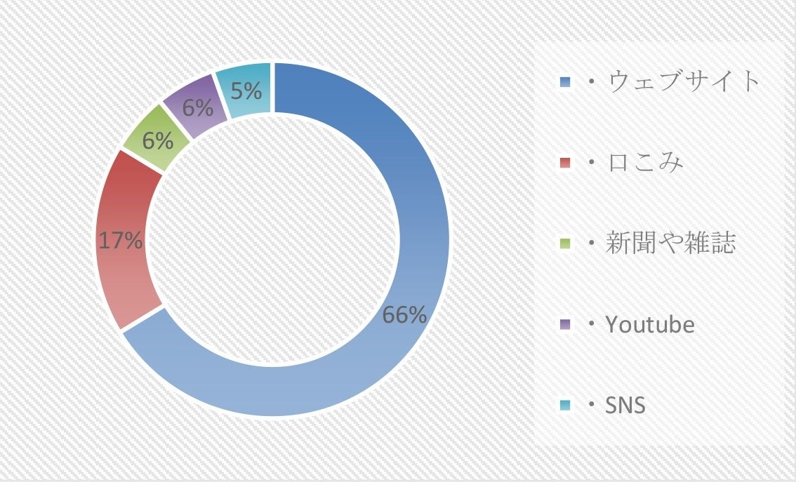 全体の約7割(66%)がウェブサイトで決定しています。口コミ(17%)を重要視していることも