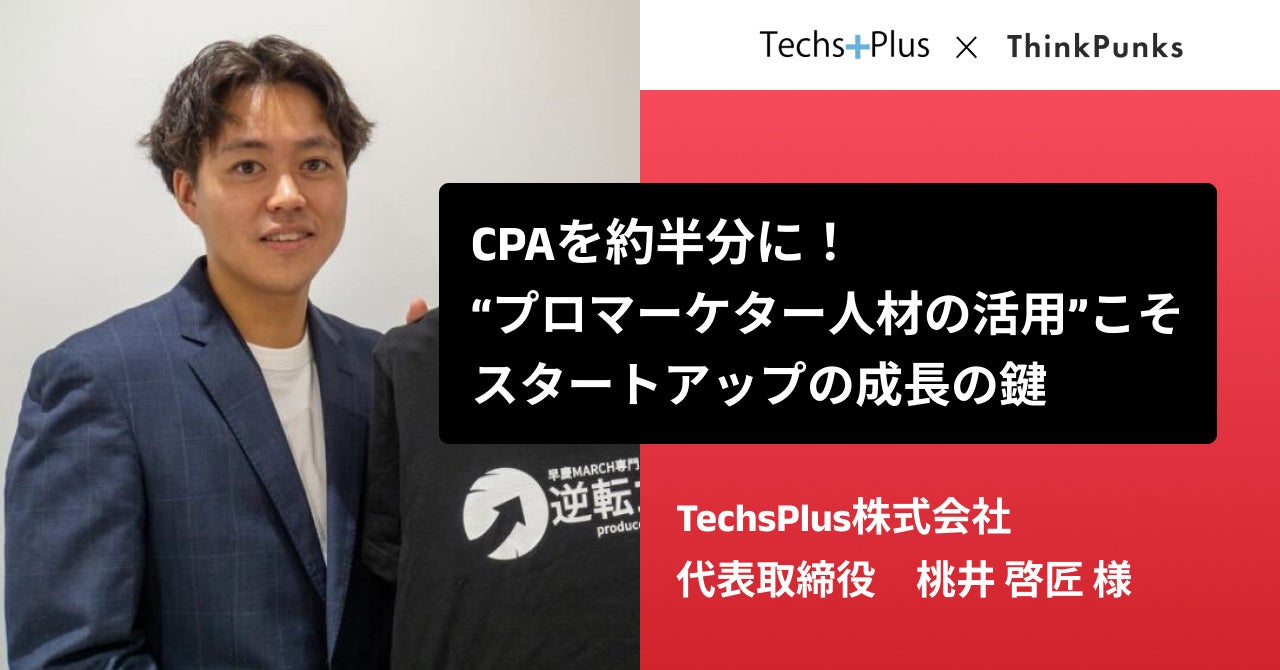 株式会社ThinkPunks(本社:東京都渋谷区、代表取締役:朝比奈遥人)は、プロマーケター特化した複業/フリーランス人材マッチングサービス MarketingPieceの業務委託人材を活用している企業に、MarketingPieceの活用ポイントについてインタビューを行なっております。今回は、「難関私大専門オンライン塾・逆転コーチング」を展開するTechsPlus株式会社(本社:東京都渋谷区、代表取締役 桃井啓匠)の桃井啓匠様に、スタートアップだからこそプロ人材を業務委託で活用するべきポイントを伺いました。