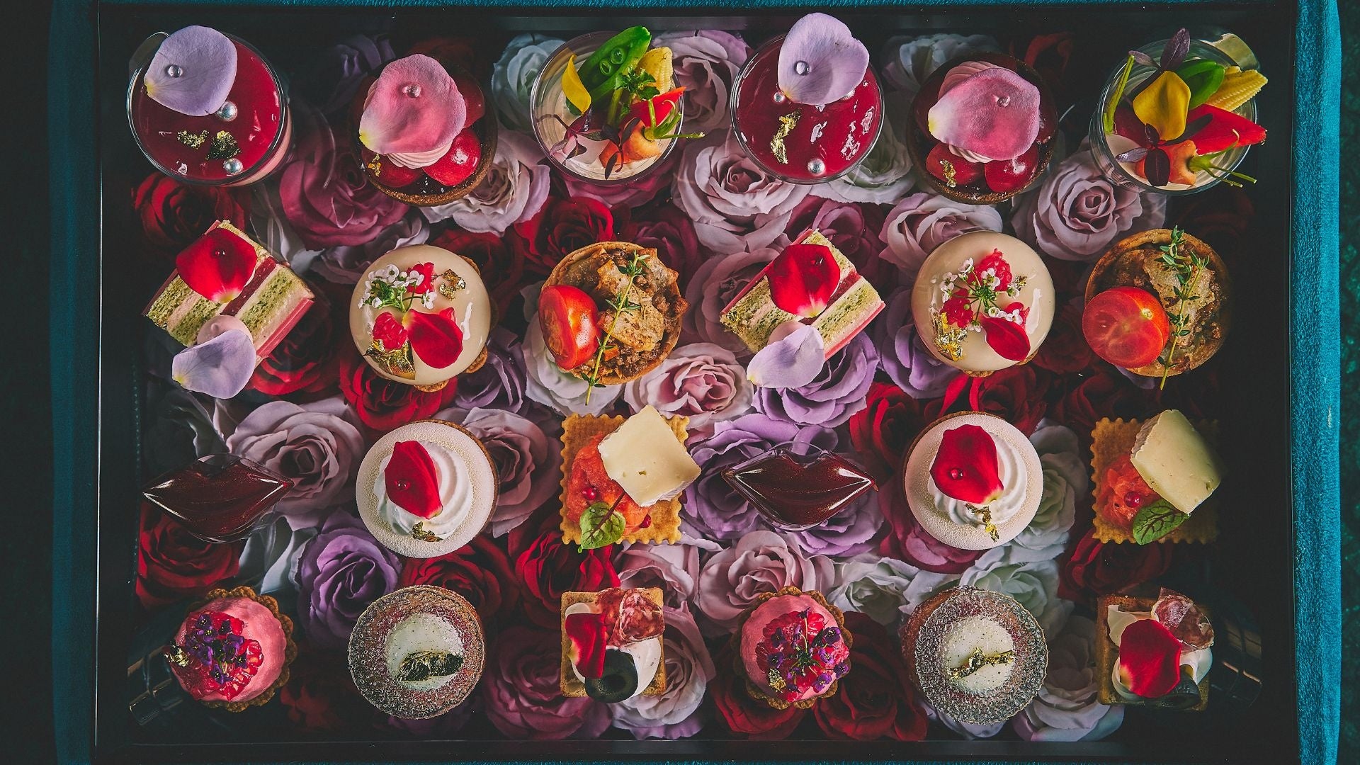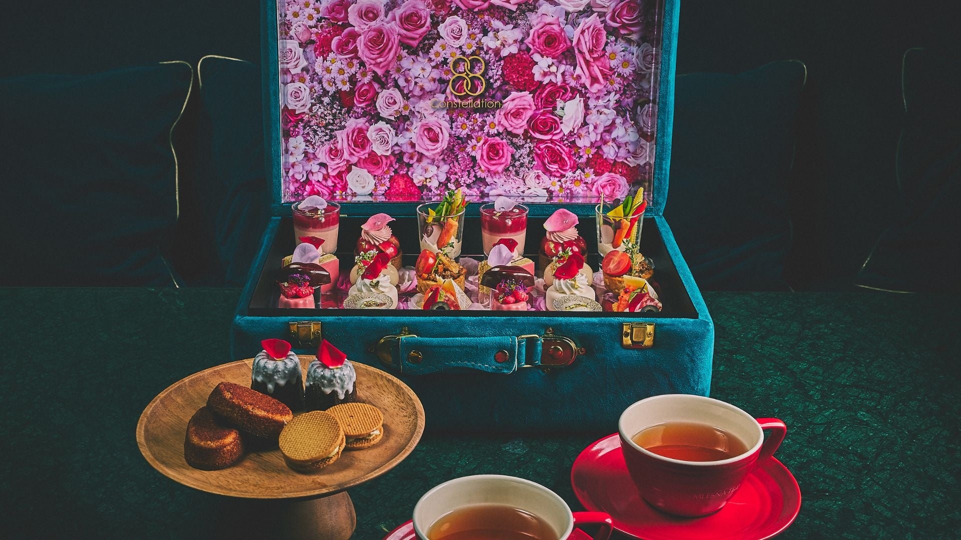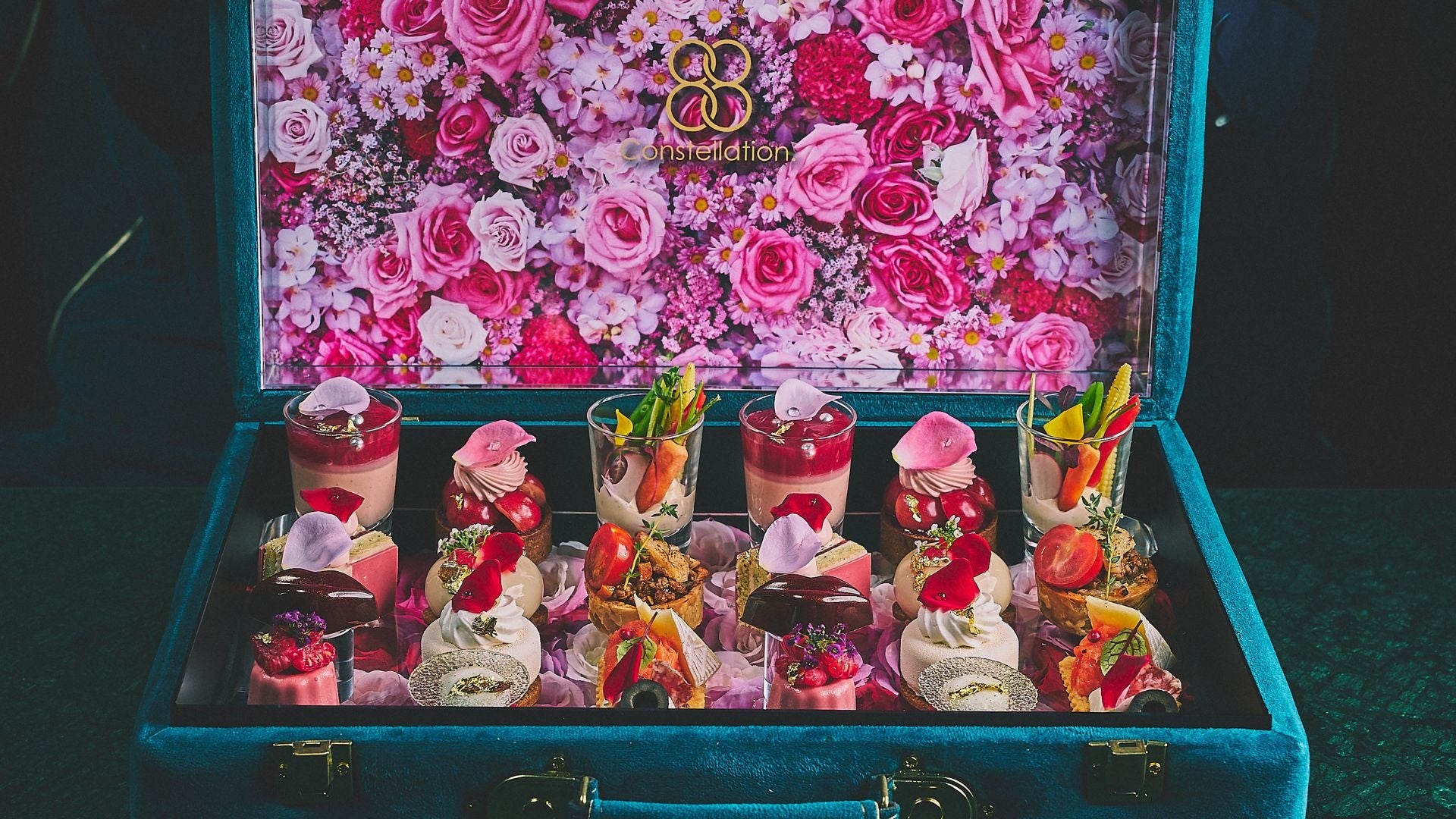 Constellation.(コンステレーション)オリジナルトランクに収められた「薔薇」をテーマにしたアフタヌーンティー。食用薔薇のスペシャリスト「エディブルガーデン」とのコラボレーションとなっております。