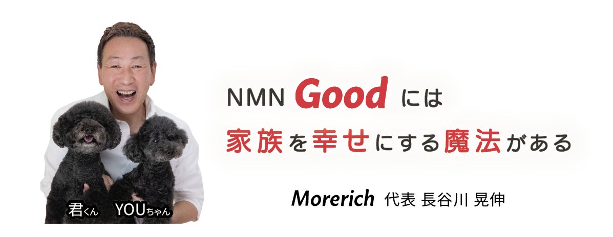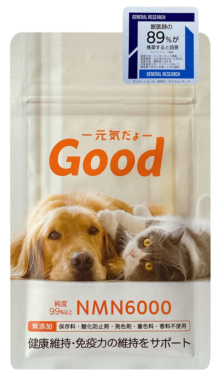モアリッチ株式会社(所在地:和歌山県和歌山市、代表者:長谷川 晃伸)は、ペット用NMNサプリGoodに含まれるNMN4500mgからNMN6000mgに増量しました。