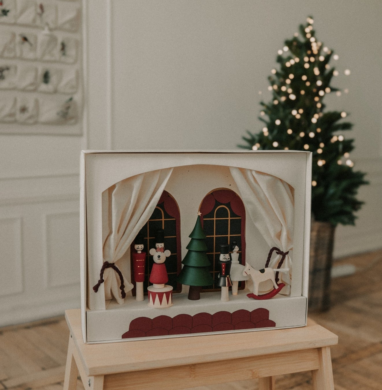 おとぎの世界をテーマにした木製のおもちゃたちが、クリスマスを彩ります。