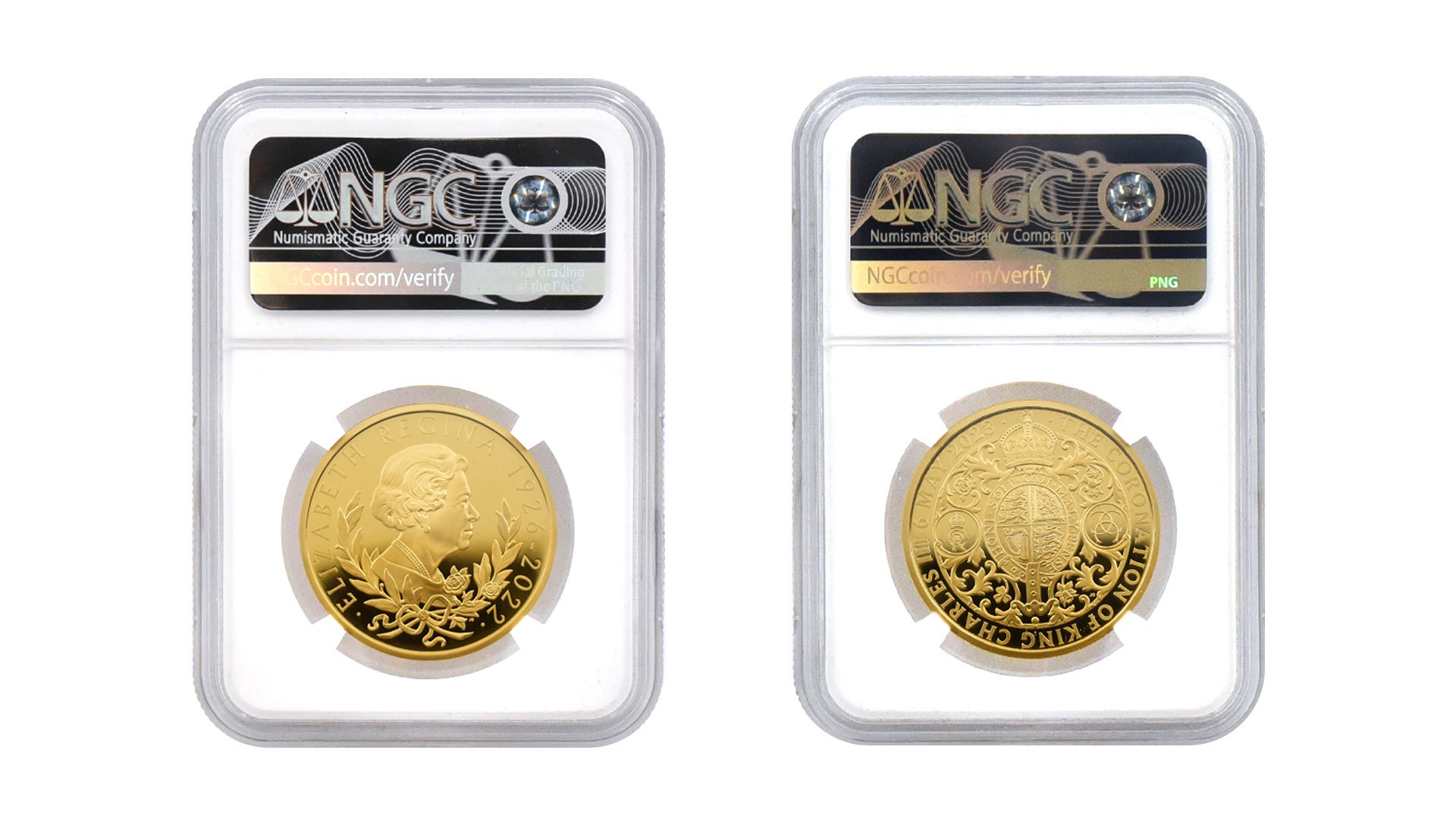 2枚セットのうち1枚は、エリザベス2世が崩御された2022年に発行された、追悼記念コインです。