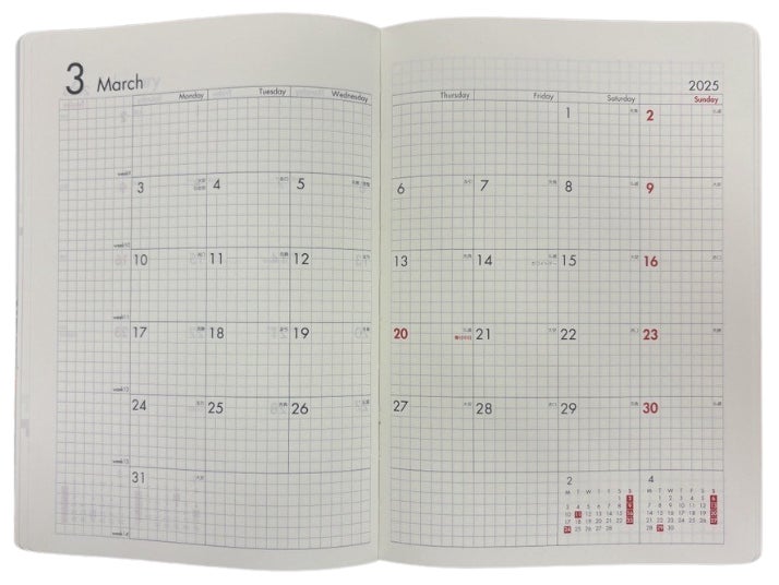 カレンダー掲載期間:2024年12月~2026年3月(月間ブロック)