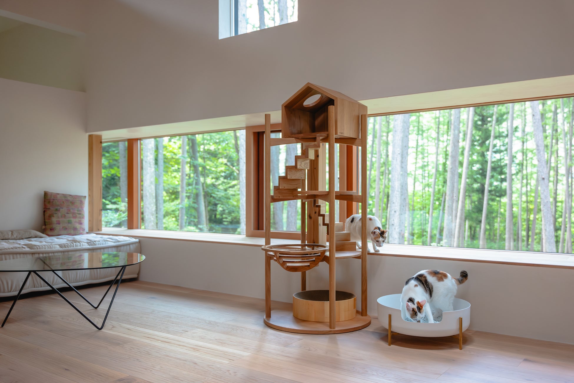 さらに、「動物と暮らす住研究所」では「ねこ推し!」をテーマに、住まいやペットと人の快適な共存に関するさまざまな展示やイベントを開催します。たとえば、長野インテリアの「キャットウオークになるソファー」など、猫との暮らしを豊かにするためのインテリアアイテムが揃い、実際の住空間での使い方を想像していただける展示となっています。KatteのLa Toiletteと併せて、猫と過ごす生活における快適さや楽しさを感じていただけるようなブース構成です。