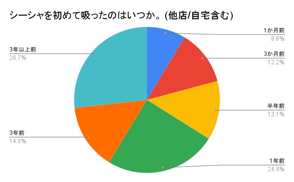 次に、シーシャの利用状況ですが、初めて吸ったのが1年以上前の人が65%でした。