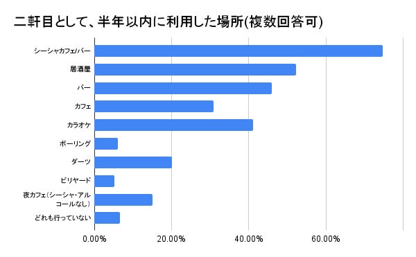 そして、二軒目として利用する場所はシーシャカフェ、シーシャバーが一位でした。