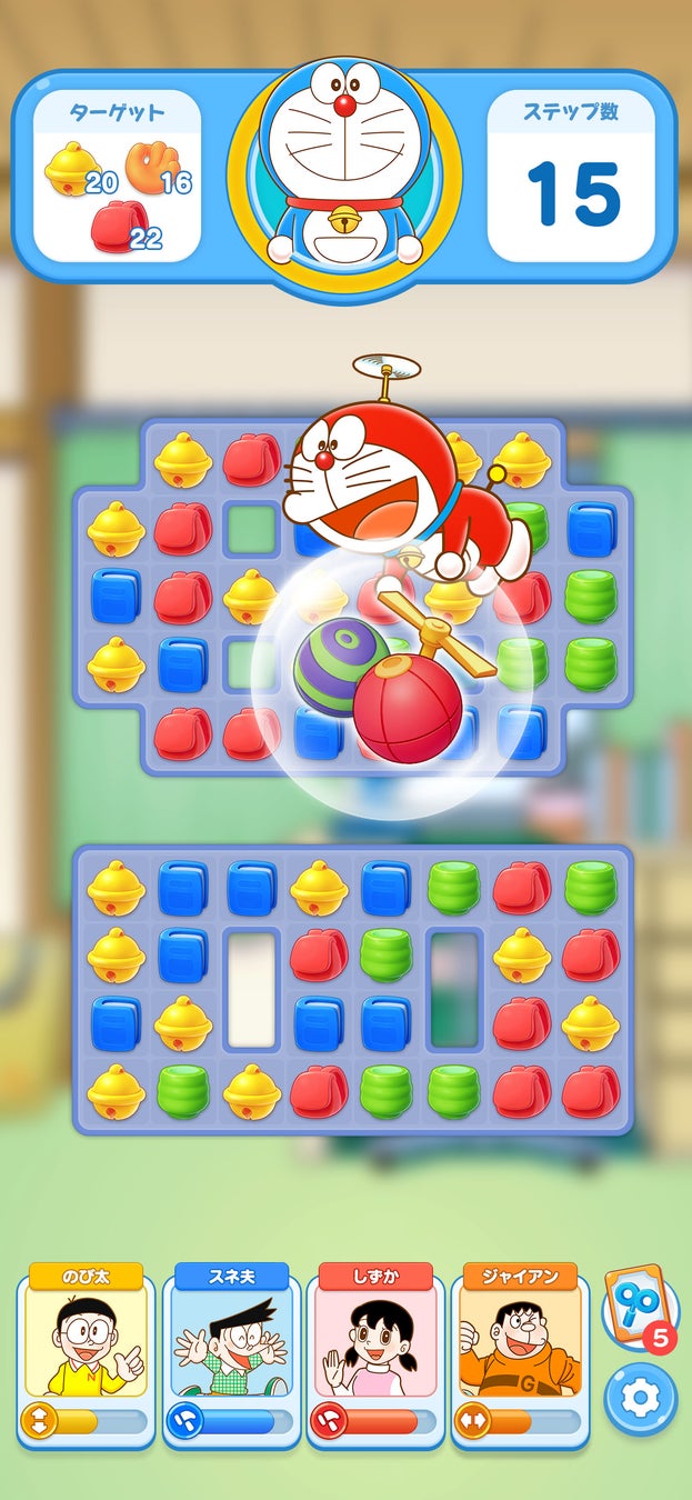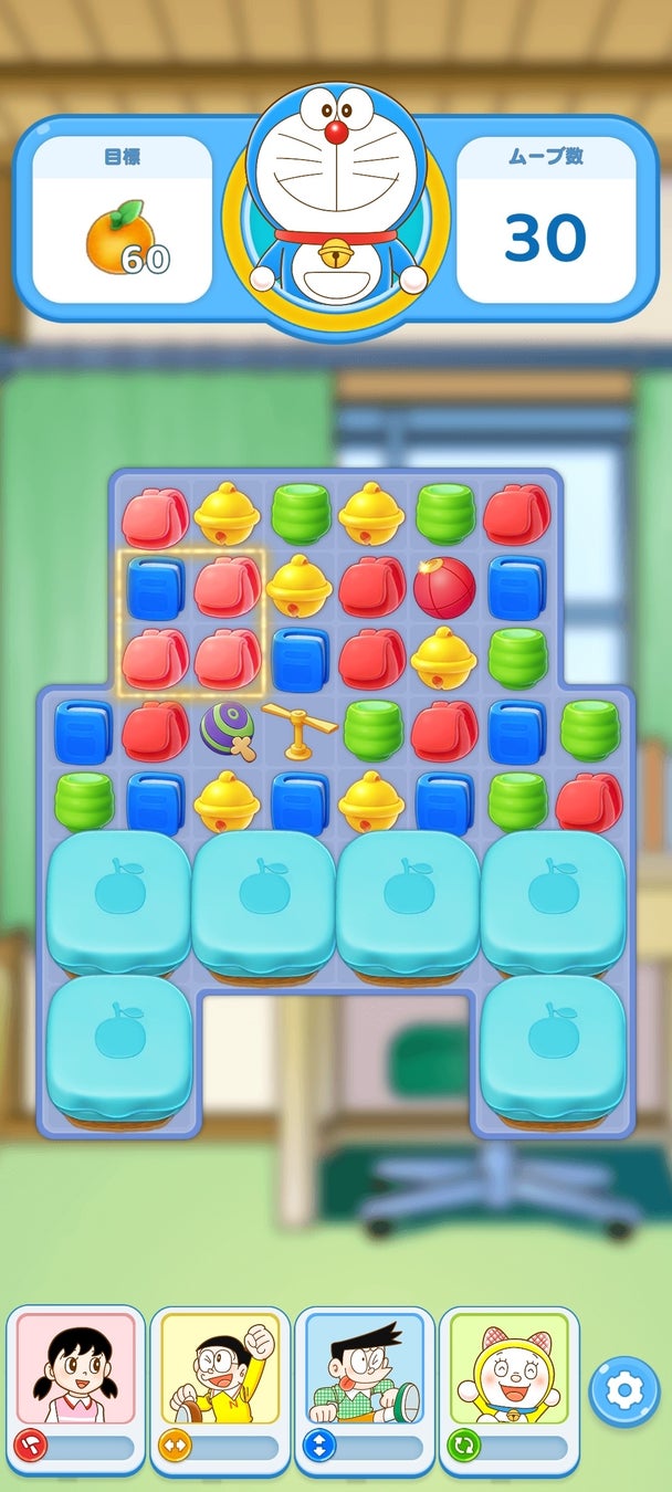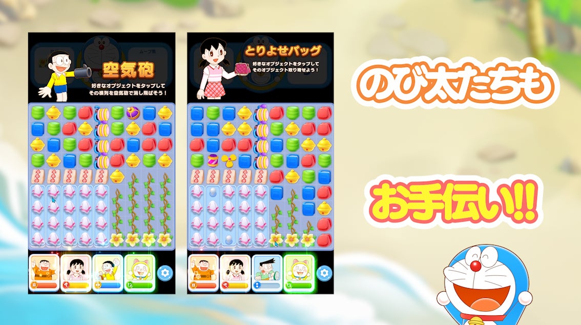 同ゲームはドラえもんのマッチスリーパズルゲームとなっております。