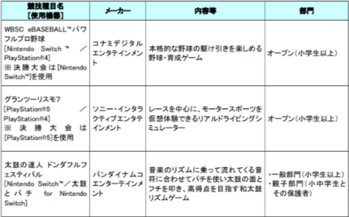 「WBSC eBASEBALLTMパワフルプロ野球」、「グランツーリスモ7」、「太鼓の達人 ドンダフル