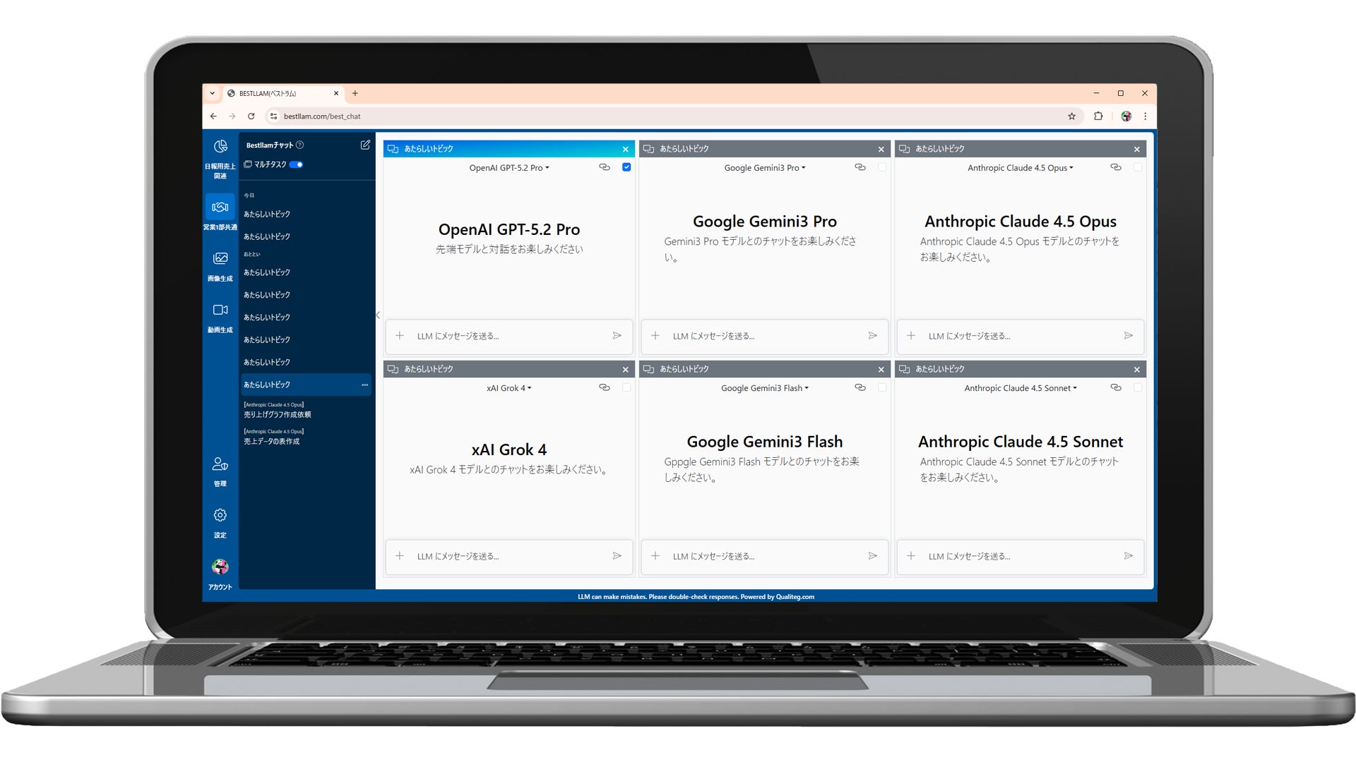 Bestllam®なら、GPT・Claude・Gemini・Grok・Qwen・DeepSeekなど20種類以上のLLMを契約一本で使い分けられます。最新のモデルや部署ごとに異なるニーズに社内で応えられる体制を整えることで、シャドーAIの発生リスクを抑える一助となります。