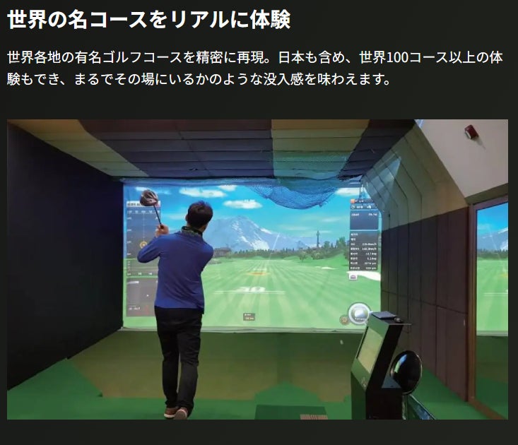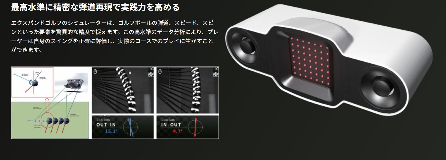 LAHAGOLF24町田旭町店にはLAHAGOLF24オリジナルの高機能シミュレーター[ExpandGOLF]が4台設置されます。飛距離計測の他、スイングモーション分析、インパクトの瞬間の画像分析が可能です。また鮮やかに表現されたコースでラウンドも可能です。(2人プレイ可)