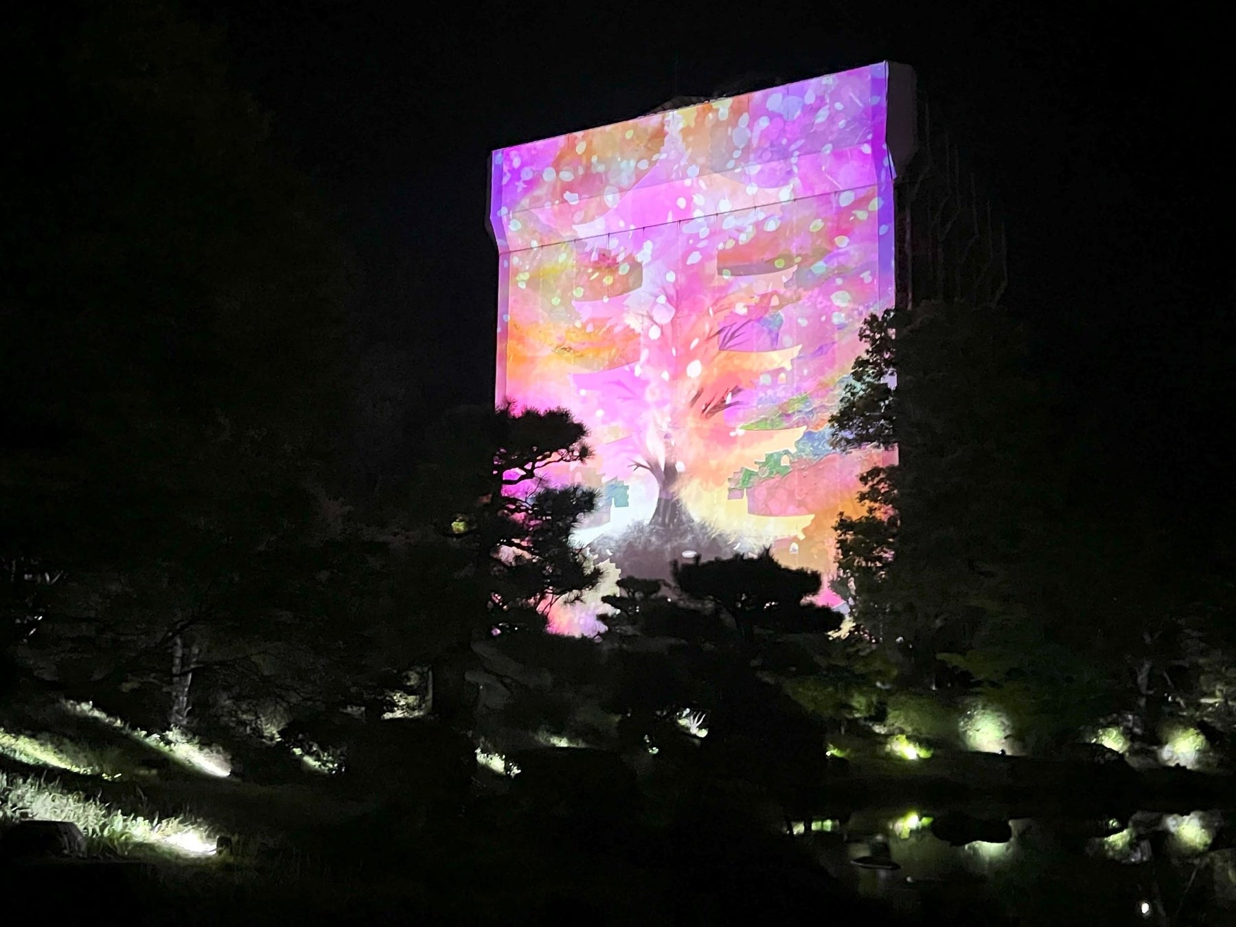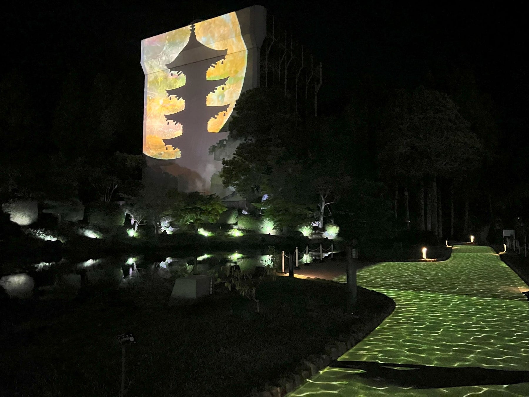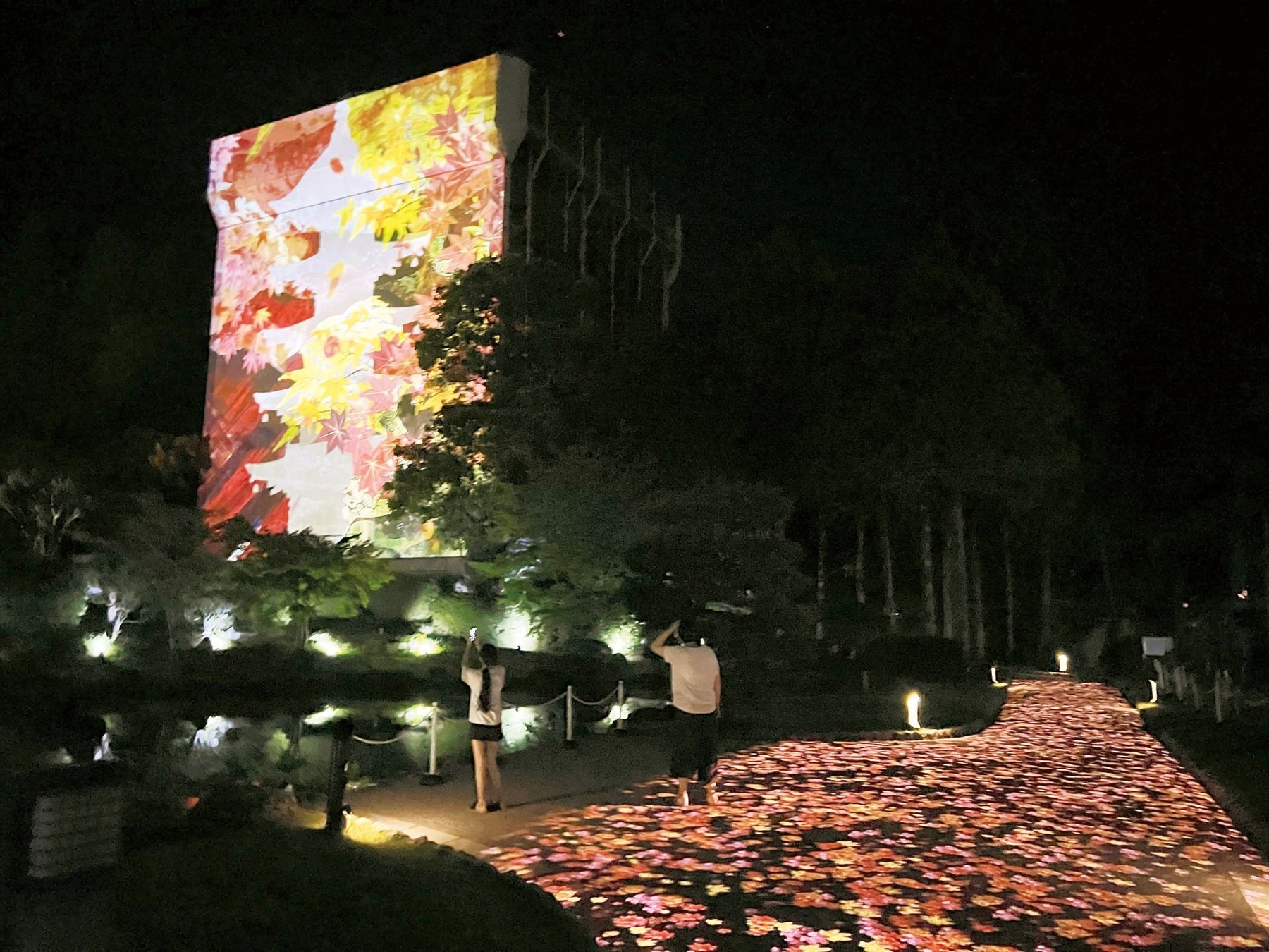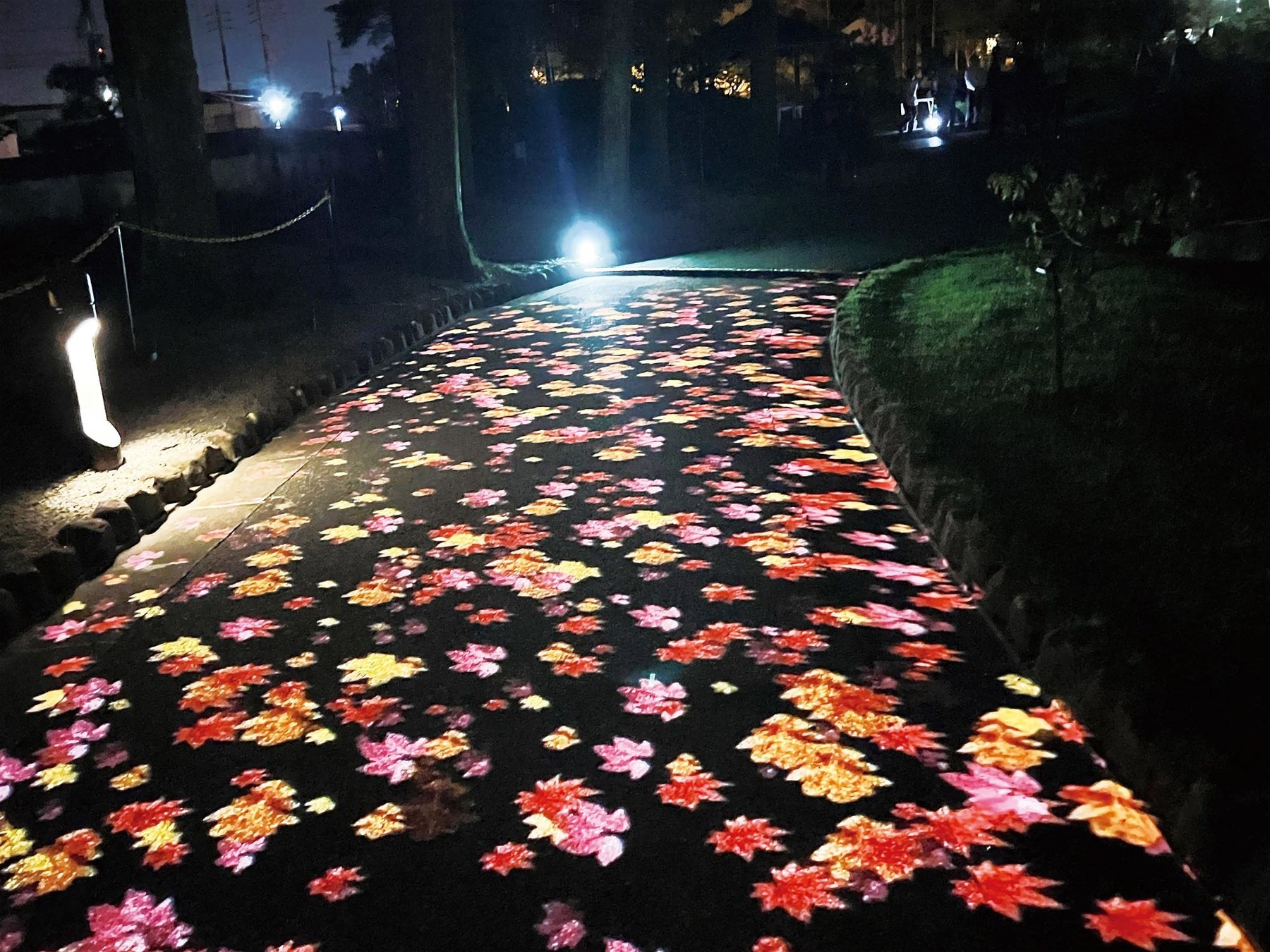 また、香山公園塔影の池東側の通路では、人の動きに合わせて季節の演出が変化するプロジェクションマッピングも楽しめます。