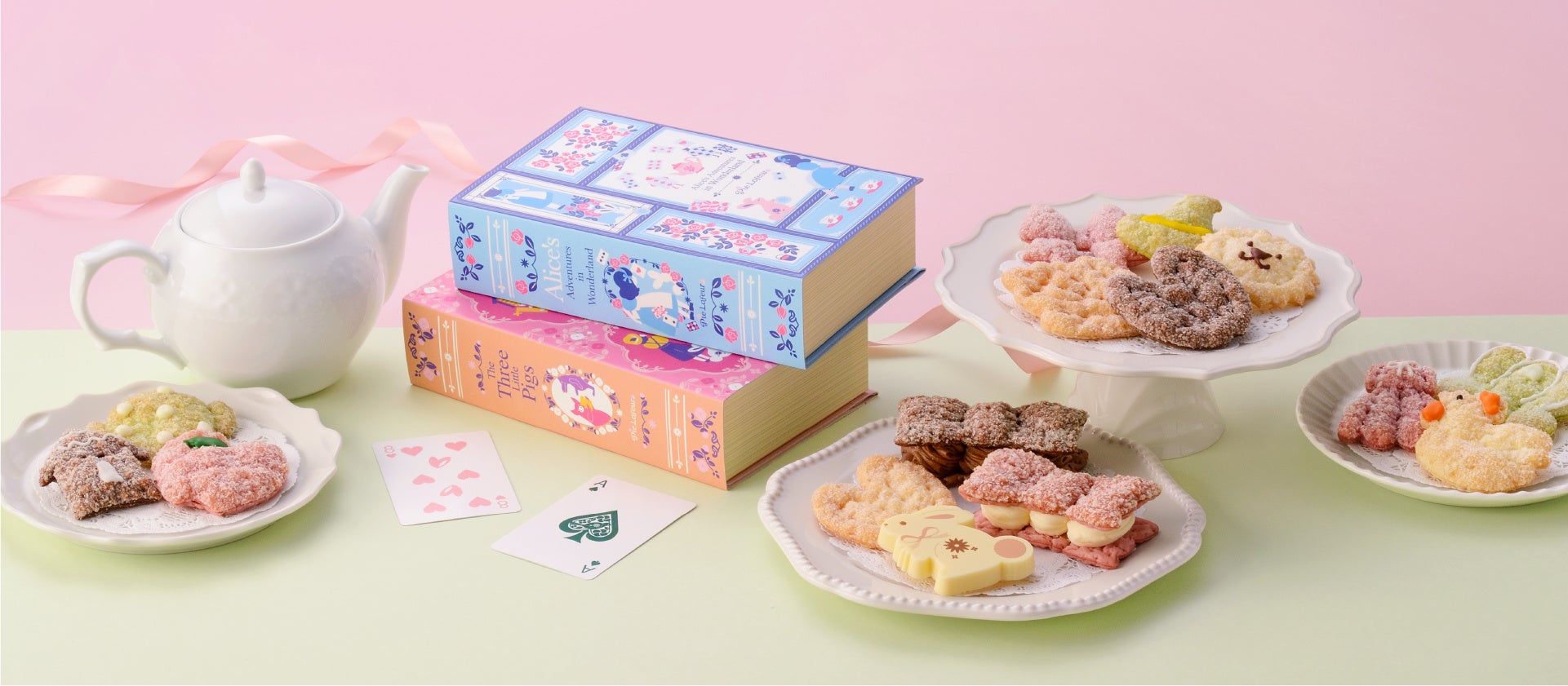 まるで絵本のようなパッケージに、物語に登場する魅力的なモチーフを型取ったパイ。お気に入りの本を手に取るように、10種類の絵本風BOXからお好みのものをお選びいただけます。