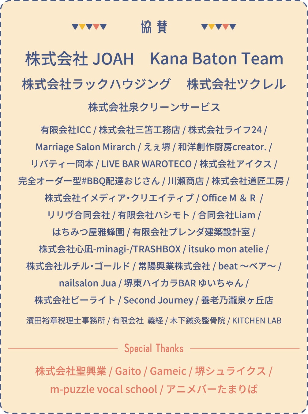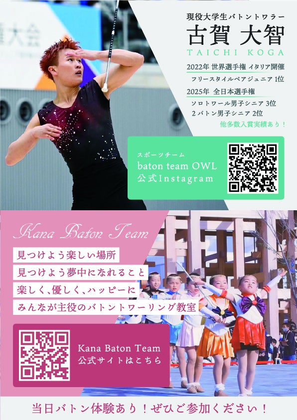 「アニメバーたまりば」の店長あぶがステージ司会進行で、6歳にして数々のダンスバトルで優勝経験を持つ天才キッズダンサー「AnJU」のダンスステージや、アコースティックユニット「LIKALIFE」などの音楽ステージ、そしてKana Baton Team率いる現役大学生バトントワラーで全日本選手権・世界大会をはじめ、国内外の主要大会で数々のタイトルを獲得してきた古賀大智選手が登場!