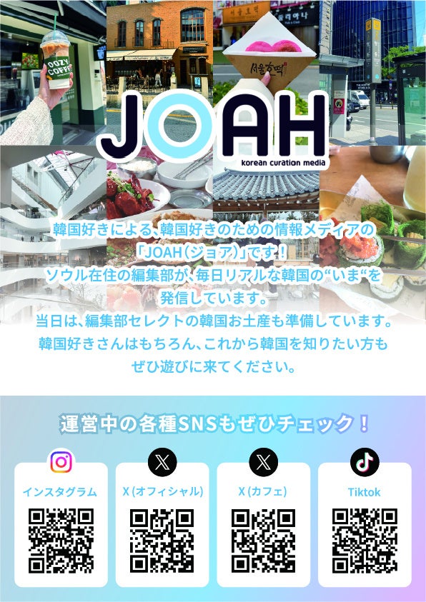 さらに、韓国トレンドメディア「JOAH(ジョア)」編集部から、来場者の皆さまへ韓国お土産の特別プレゼントもご用意しています。