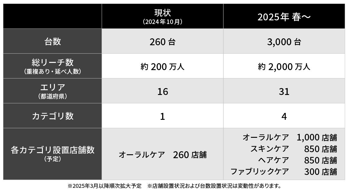 このように、高い導入効果が得られ、小売企業様やメーカー様よりご好評いただいていることを受け、来春までを目途に下記のとおりサービス提供規模を大幅拡大し、メディアパワーの向上を図ってまいります。