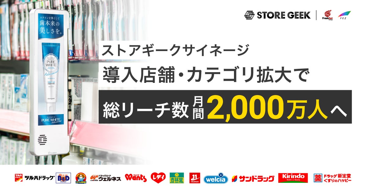 リテールメディアサービス「ストアギークサイネージ」導入店舗・カテゴリ増加で総リーチ数月間2,000万人へ