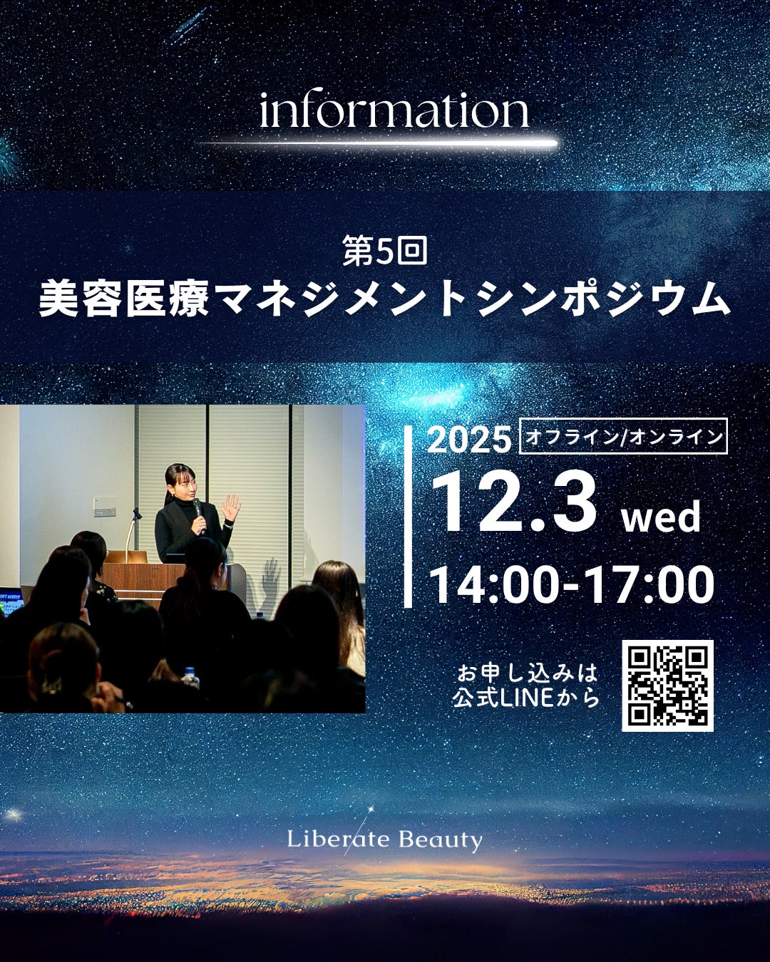 株式会社LiberateBeauty(代表取締役真山綾美)は、美容医療業界の持続的な成長と現場力向上を目的とした「第5回美容医療マネジメントシンポジウム」を、2025年12月3日(水)に開催いたします。