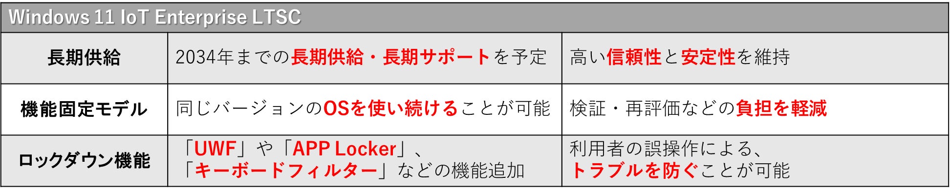 ■Windows 11 IoT Enterprise LTSCの主な特徴