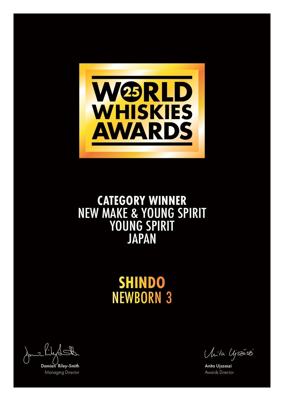 この度、イギリスのウイスキー専門誌『ウイスキー マガジン』の発刊元であるパラグラフ・パブリシング社が主催するウイスキーの世界的なコンテスト「ワールド・ウイスキー・アワード(以下WWA)2025」において、株式会社 篠崎 SHINDO LAB(本社:福岡県朝倉市比良松)の「SHINDO NEW BORN」が「ニューメイク&ヤングスピリッツ ニューメイク部門」にてGOLD及び部門最高賞(カテゴリー・ウィナー)を受賞いたしました。