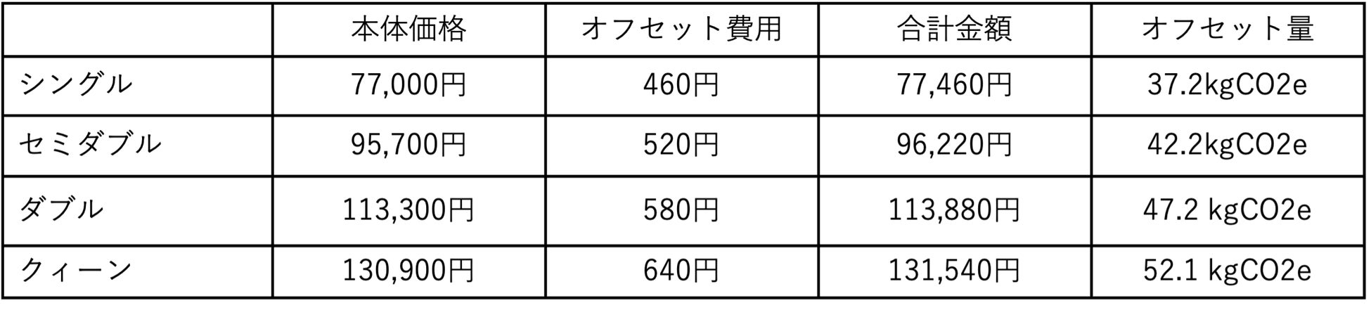 unbleached & more 羽ぶとん レギュラー カーボンオフセット付 価格表(税込)