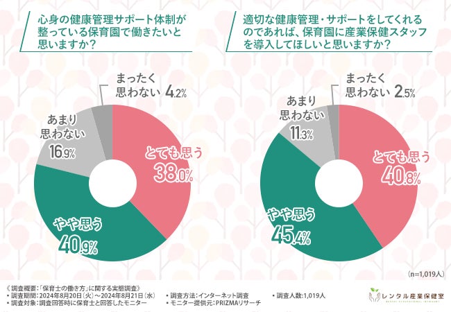 現場で働く保育士の多くが、心身の健康管理サポート体制の整備と産業保健スタッフの導入を望んでいることが示されました。
