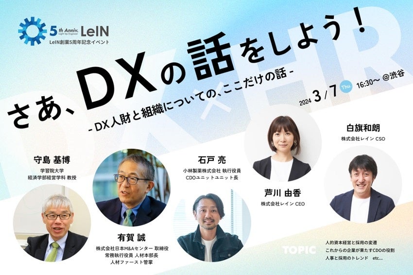 IT採用や日英バイリンガル対応のHRコンサルティング・RPOを得意とする株式会社レイン(LeIN/本社:東京都千代⽥区、代表取締役:芦川 由⾹)は、創業5周年記念イベントを開催する運びとなりました。