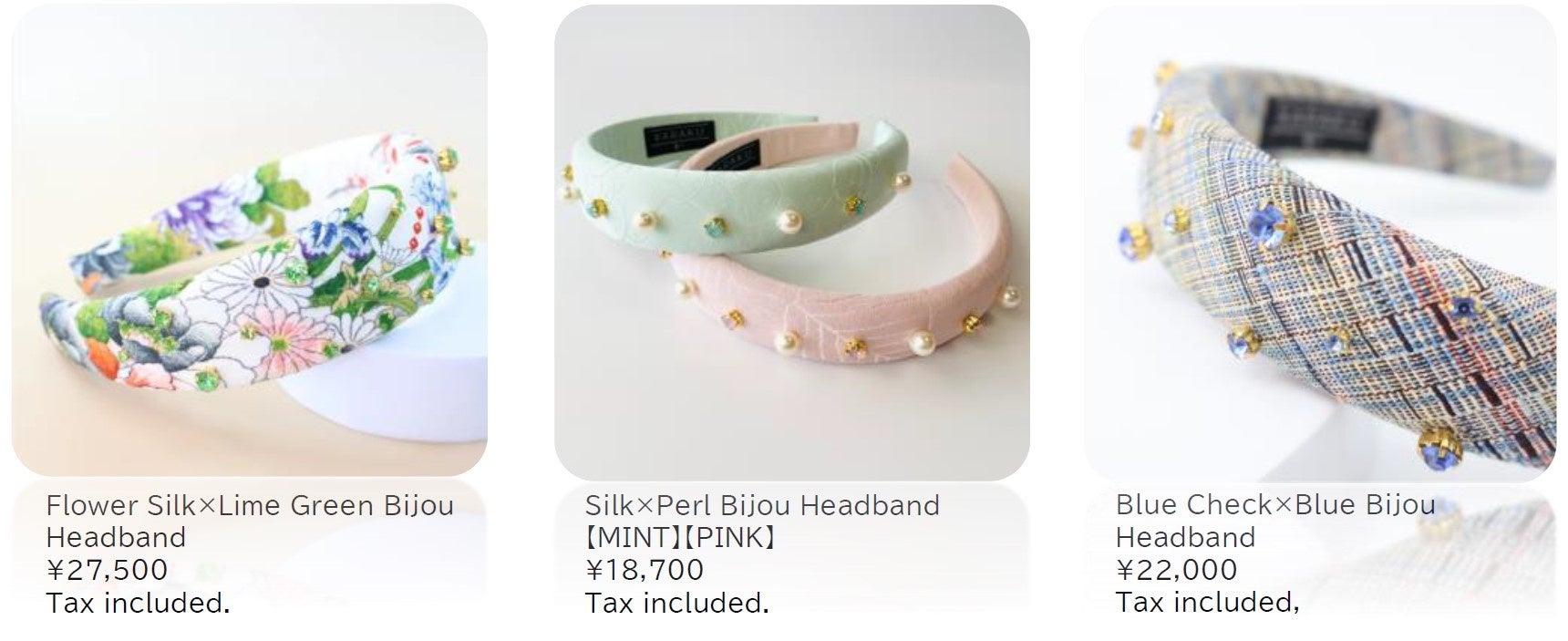 KARAKU by meは、国産素材を使用し一点一点手仕事で製作しているヘアアクセサリーブランドです。ブランド名のKARAKUは嘉楽=「喜び楽しむ」という禅語から名づけており、自らを喜ばせ楽しませることのできる大人の女性を現しました。「伝統文化とリアルウエアの融合」をテーマにデザインしている着物生地とビジューを掛け合わせた、アーティスティックでサステナブルなカチューシャは海外からも買い付けが入るなどブランドの代表的シリーズです。