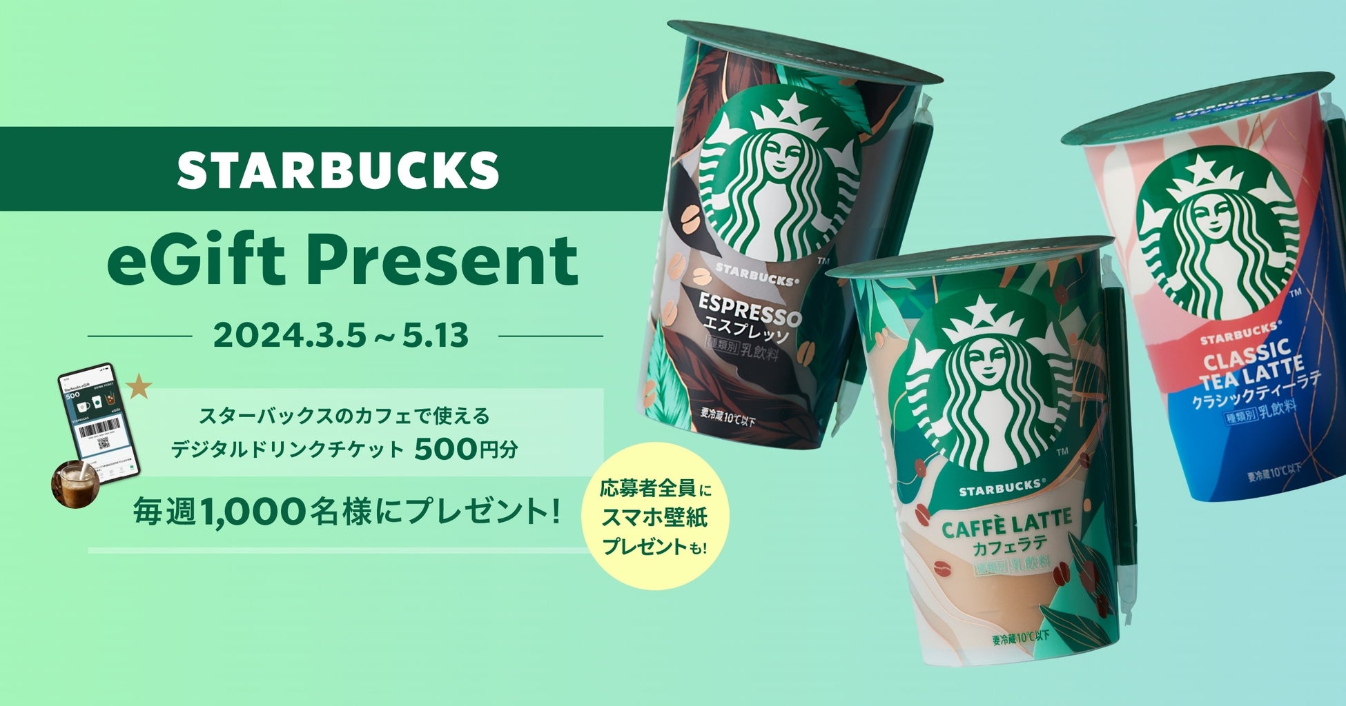 スターバックス® デジタルドリンクチケット 500円分 毎週1,000名様(合計10,000名様)