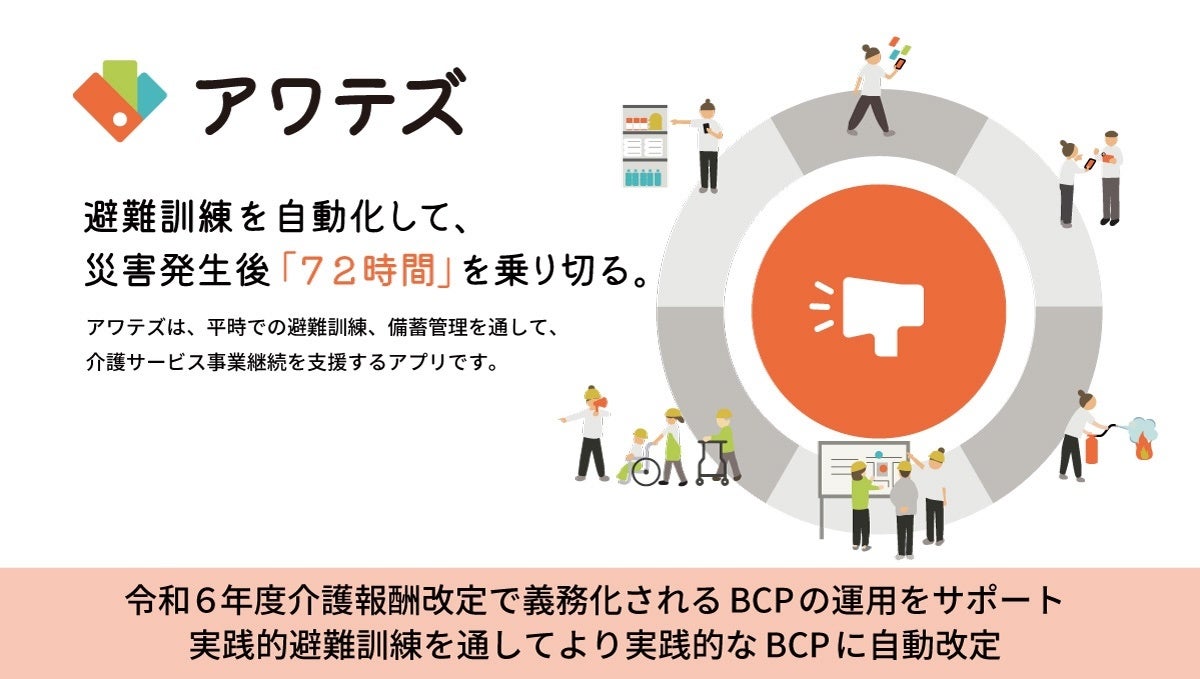 株式会社最中屋(本社:京都府京都市、代表取締役 CEO:結城 崇)は、介護サービス事業所に特化した実践的BCP(事業継続計画)の策定支援と避難訓練・備蓄品管理の自動化を行うアプリケーション「アワテズ」を2024年6月にリリースします。