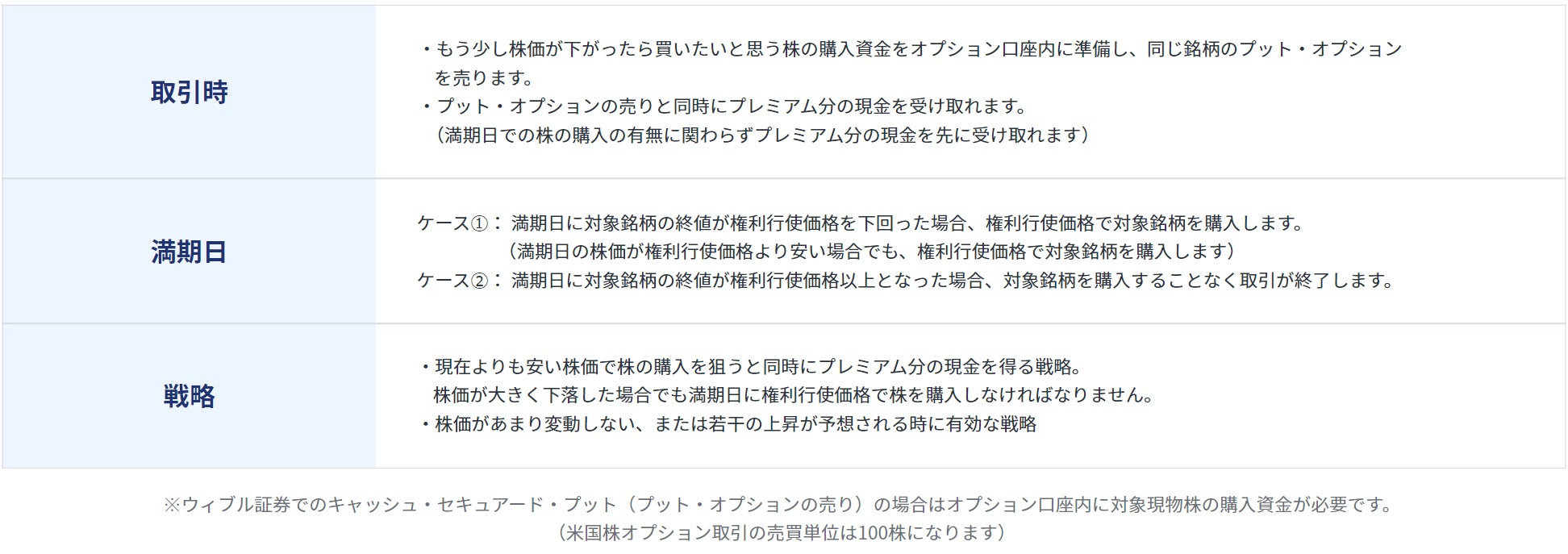 「キャッシュ・セキュアード・プット(プット・オプションの売り)」