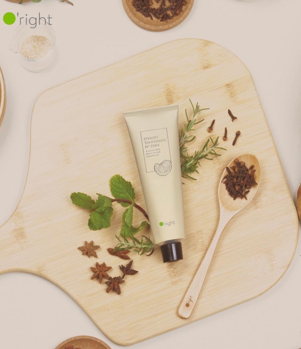 No.ゼロトゥースペーストは、様々な植物をベースに、不要な成分やリスクの高い物質を取り除き、健康食品や食品グレードの植物を優先的に使用するなど、食品と同じような姿勢で開発されています。従来の研磨剤(炭酸カルシウム、シリカなど)のように硬くて水や油になじみにくいものは、長期間使用すると歯に摩耗が生じる可能性があり、同時に水に溶けて分解されにくいという欠点があります。O'rightの厳選されたサステナブルな樹木の粉末は、食品グレードの植物性成分でもあり、USDA (米国農務省)バイオベース100%の自然で持続可能な認証を受けています。No.ゼロの環境負荷を実践し、美容と環境の美しさに気を配っています。