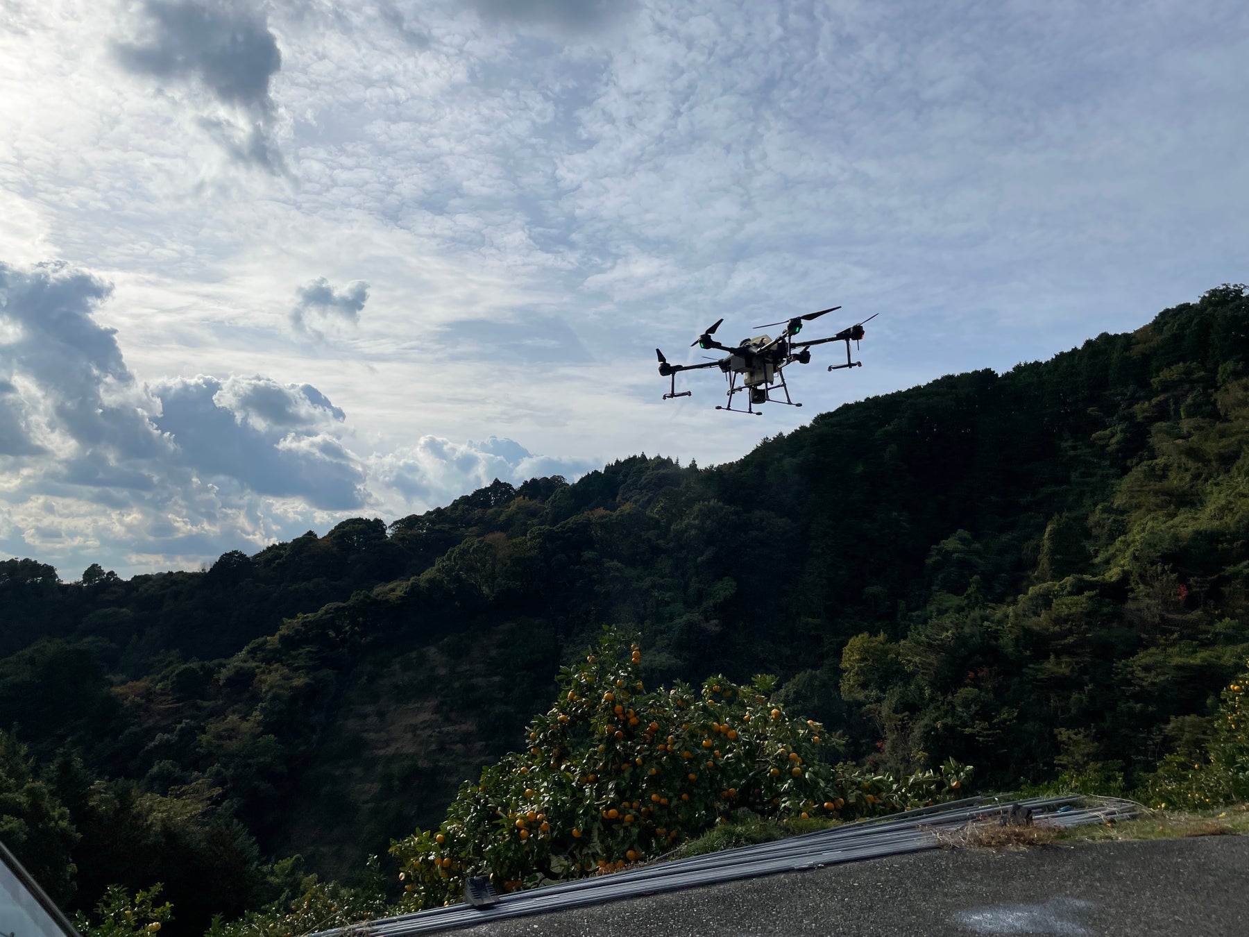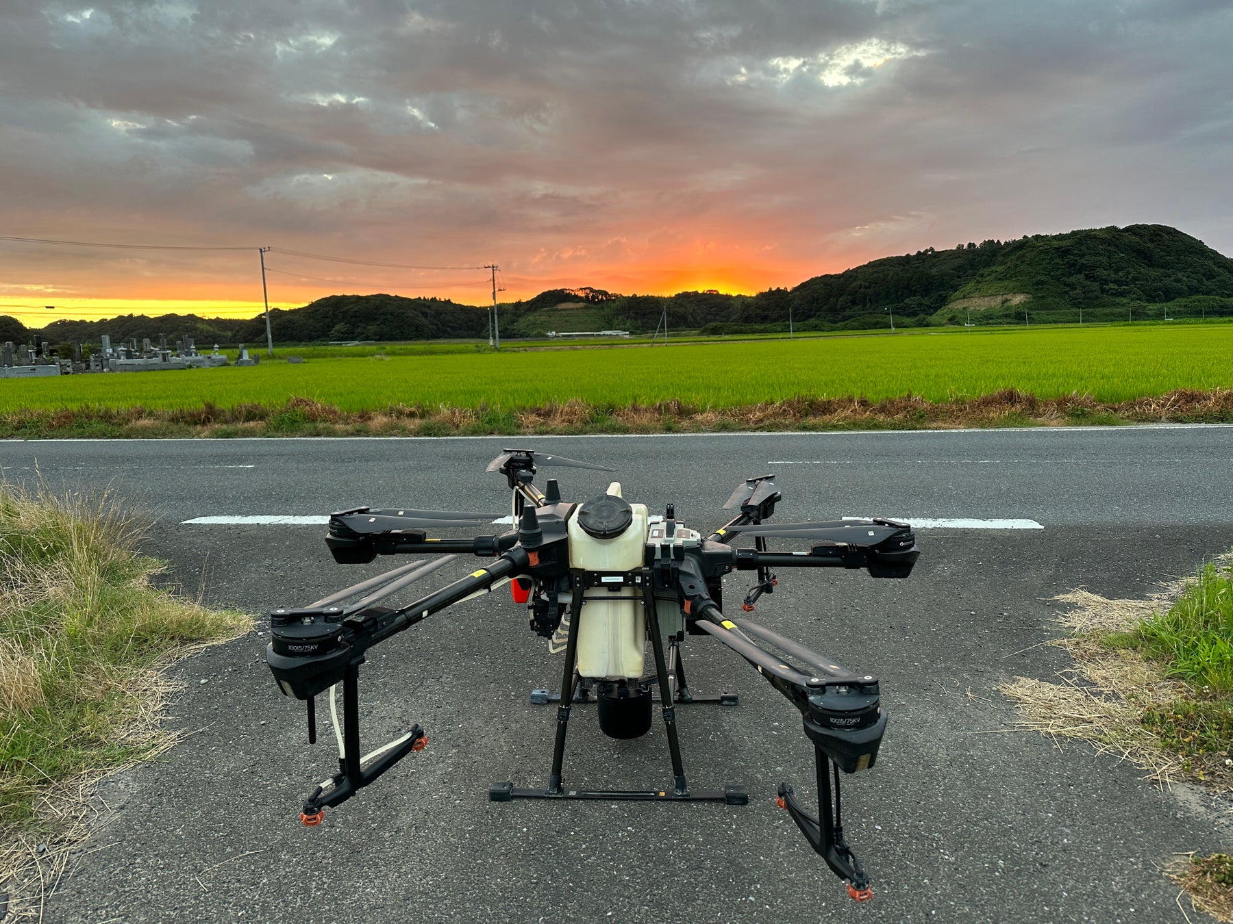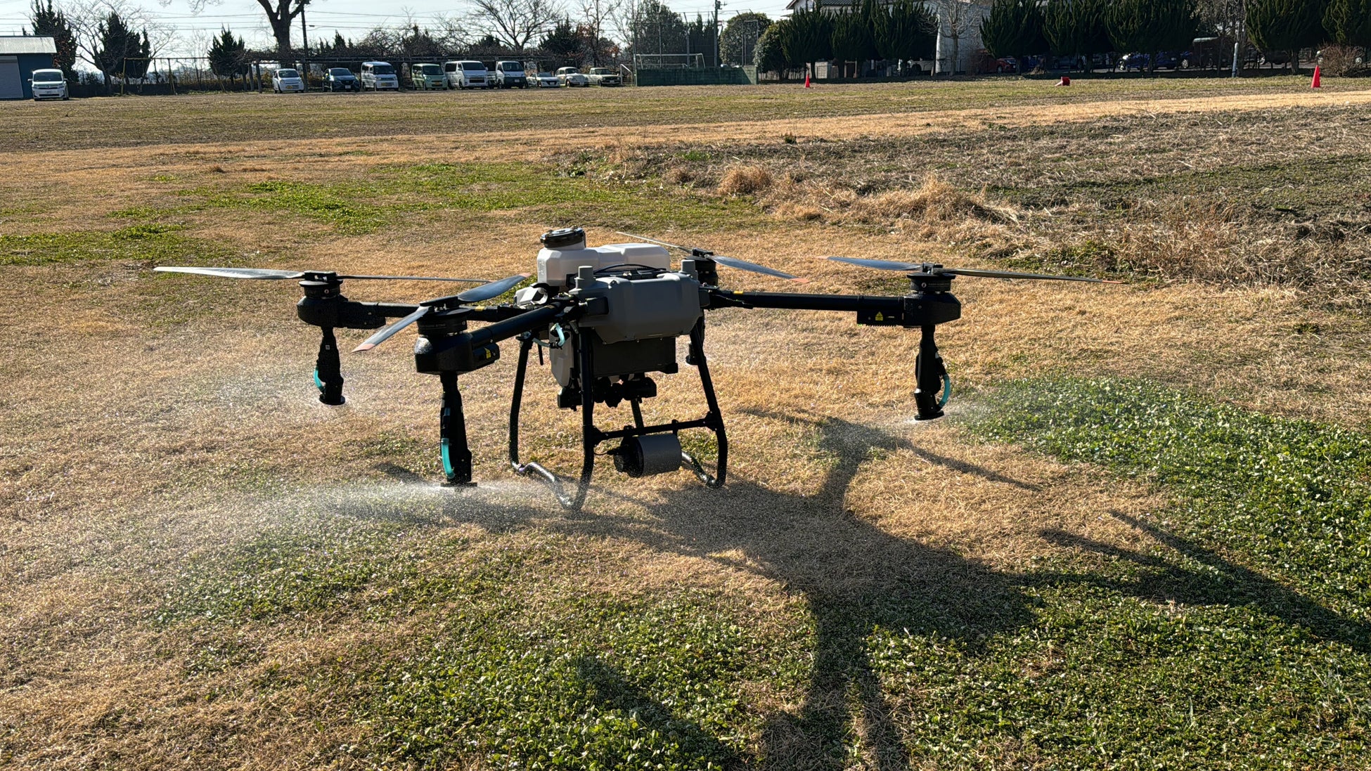 ・最新機体DJIT25を使用し、特定の10haの畑で定点からの散布実験を行う。