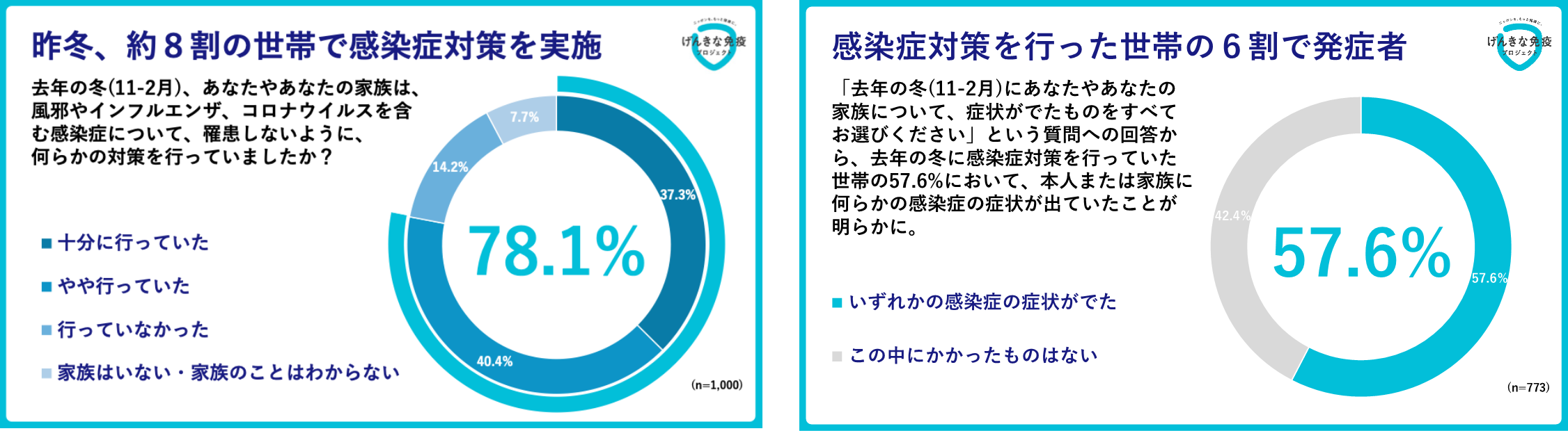 2、昨年の冬、8割もの世帯で感染症に罹患しないよう何らかの対策を行なっていた
