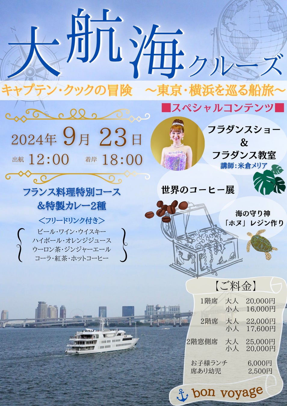 シンフォニークルーズを運営する株式会社シーライン東京(本社:東京都港区海岸、代表取締役社長:斉藤 博章)は2024年9月23日(月・祝)に「大航海クルーズ2024」を開催いたします。