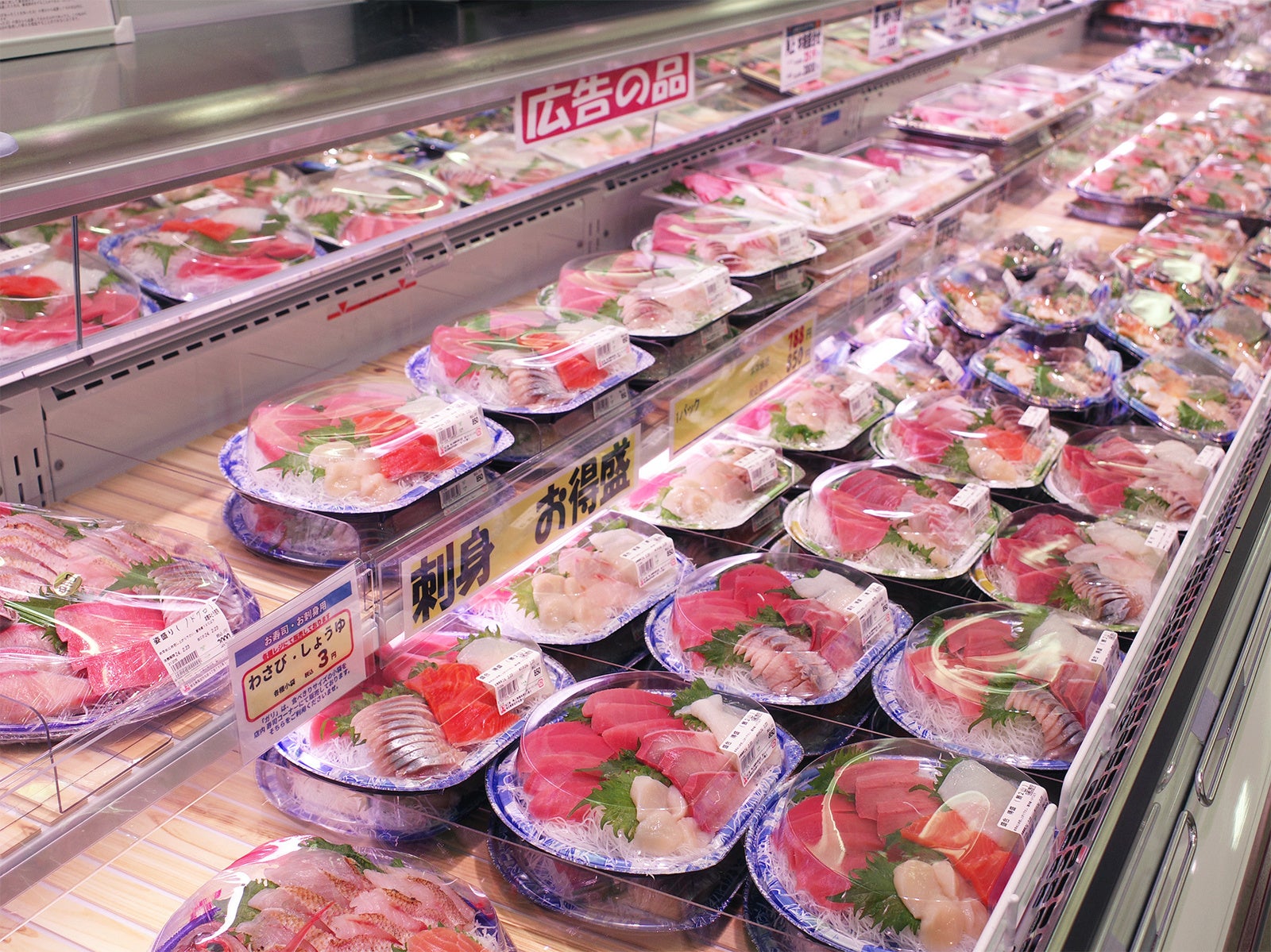 もちろん、代名詞ともいえる活気あふれる「鮮魚 対面販売」売場はリニューアル前と変わりなく、一面に並ぶ丸ごと一尾の鮮魚群から、従業員と直接会話を交わしてご購入いただく醍醐味をお楽しみいただけます。そして、刺身、寿司、惣菜、自家製漬魚など600点を超える魚介関連商品を取りそろえて、より一層お客様にお喜び頂ける店舗になるものと自負してございます。