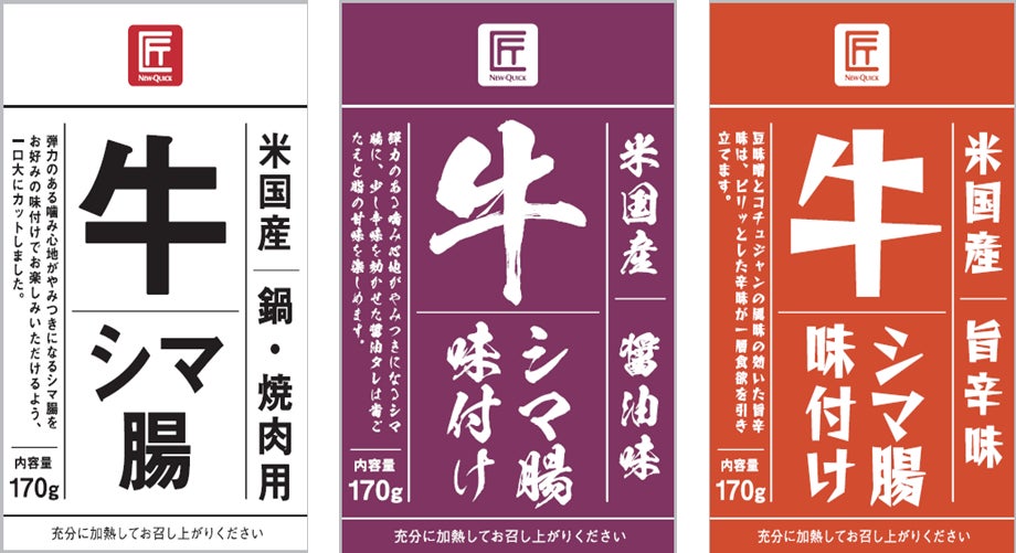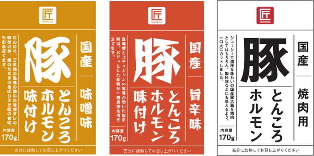 ニュー・クイックでは、「原料」「産地」「製法」にこだわったプライベートブランドを展開しています。『匠シリーズ』は手間を惜しまず丁寧に作り込んだ、老舗肉屋ニュー・クイックが自信を持ってお届けするシリーズです。中でも今回発売される『匠 ホルモンシリーズ』は、人気のホルモンをニュー・クイックのおススメのタレで味付けし、手軽でカンタンにホルモンを楽しんでいただくための商品です。