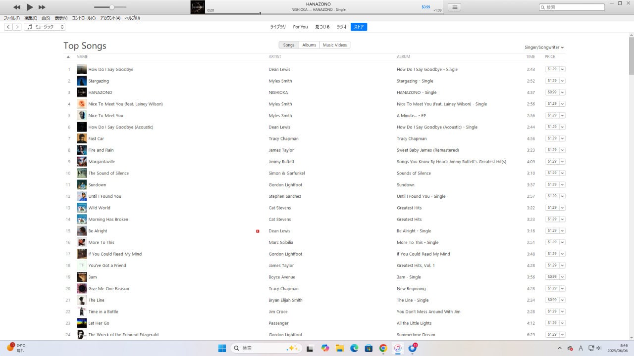 2025年6月6日、アメリカiTunes「シンガーソングライター」チャート上位に並んでいたのは、以下のようなアーティストたちだった。