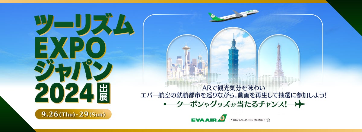 エバー航空(本社:台湾 桃園市、社長:孫 嘉明)は2024年9月26日(木)から29日(日)まで東京ビッグサイトで開催される「ツーリズムEXPOジャパン2024」に出展することをお知らせいたします。