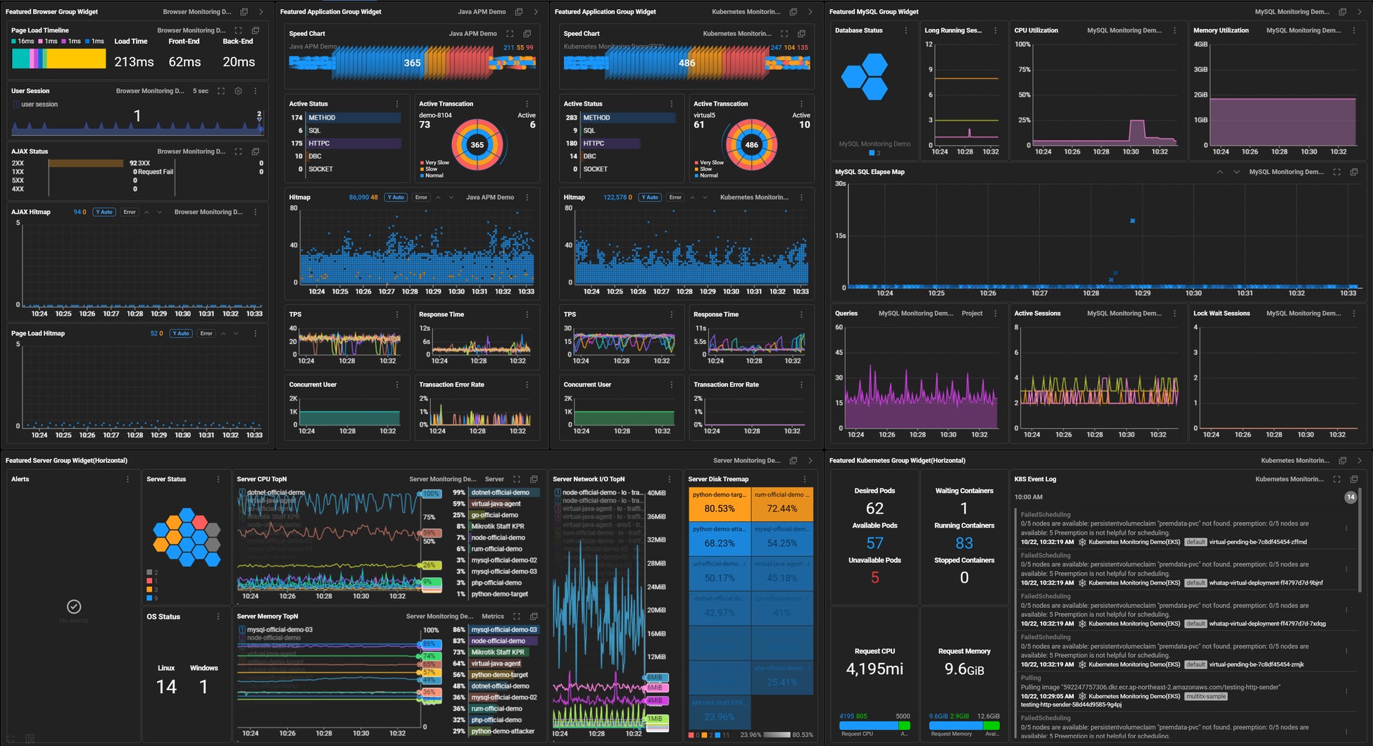 WhaTap Monitoring Servicesは、パブリックSaaS、プライベートSaaS、オンプレミス(On-premise)型のすべてに対応しており、クラウドとオンプレミスを併用するハイブリッド環境も効率的に統合モニタリング。フロントエンドブラウザからバックエンドデータベースまで、メトリックス、トレース、ログを利用してエンドツーエンドフルスタック(end-to-end full stack)統合モニタリングを提供し、5秒間隔でトランザクション異常まで検知することでリアルタイム・オブザーバビリティを完璧に実現させる。