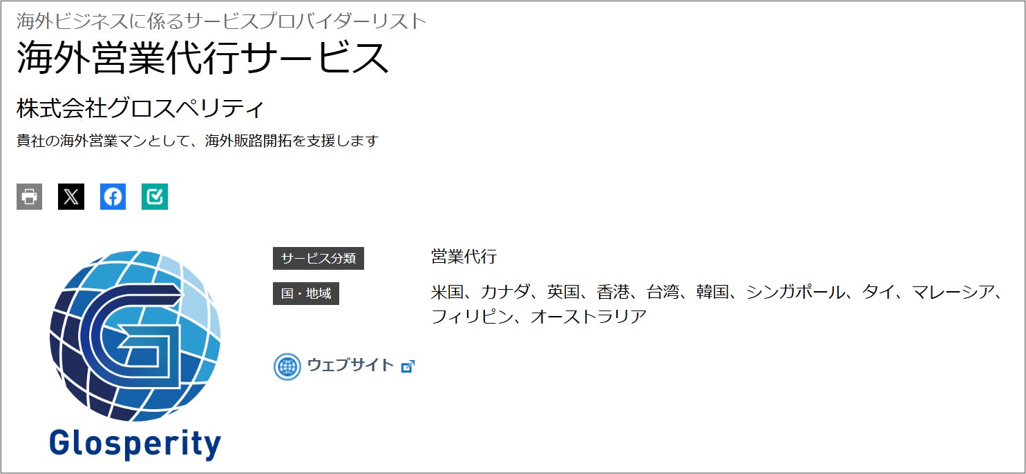 株式会社グロスペリティ、JETRO「海外ビジネスに係るサービスプロバイダーリスト」に掲載