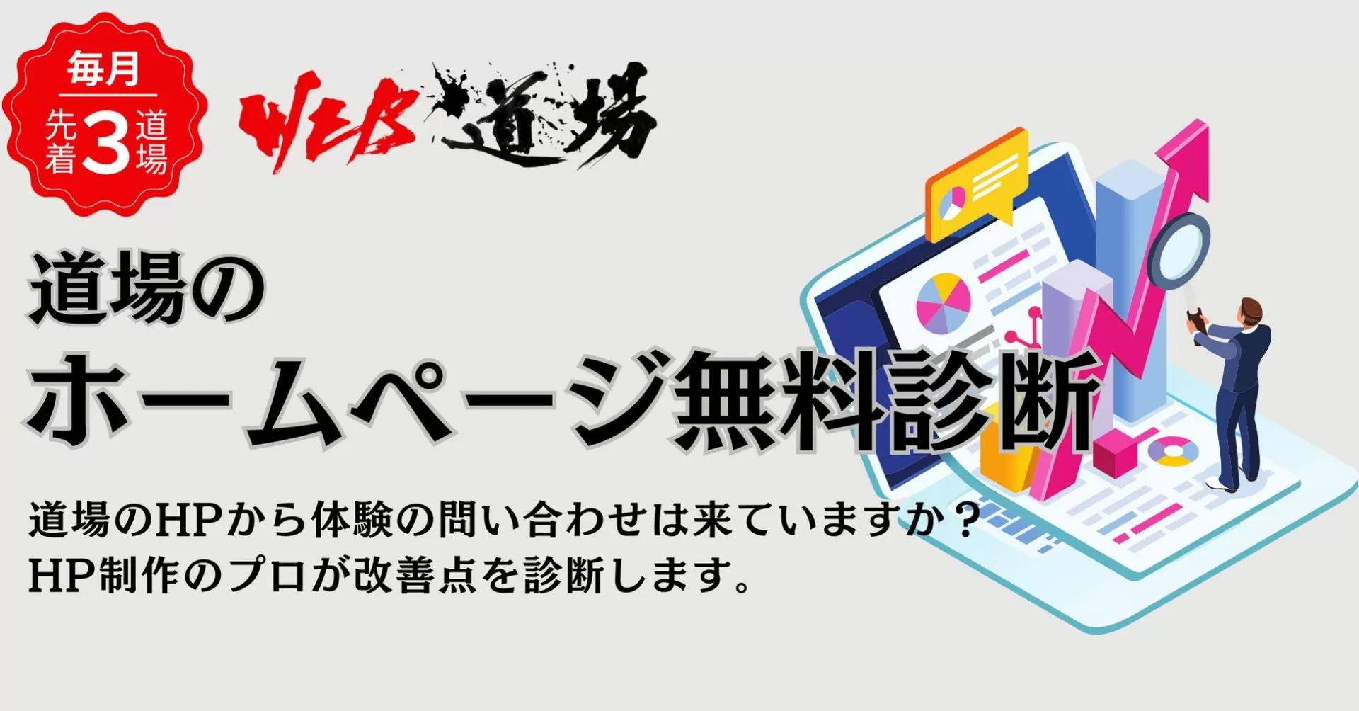 このたび全国の道場HPを無料で診断し改善点をお伝えする「ホームページ無料診断」サービスを開始します。