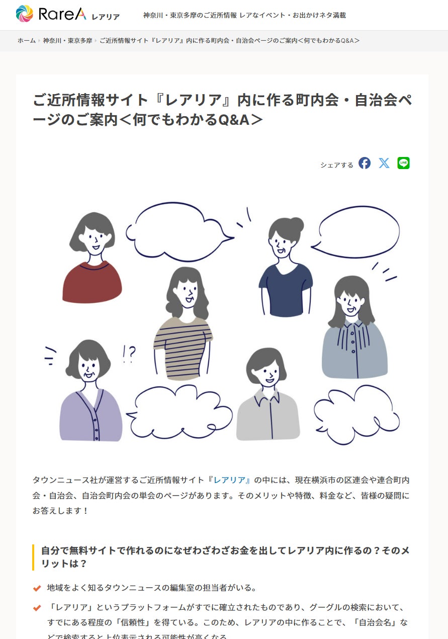・RareA(レアリア):ご近所情報サイト『レアリア』内に作る町内会・自治会ページのご案内<何でもわかるQ&A>