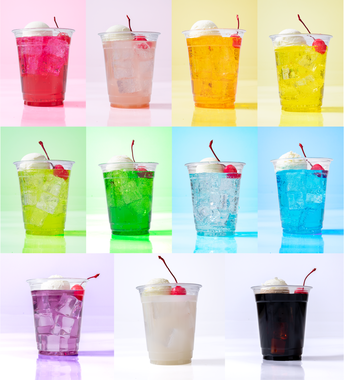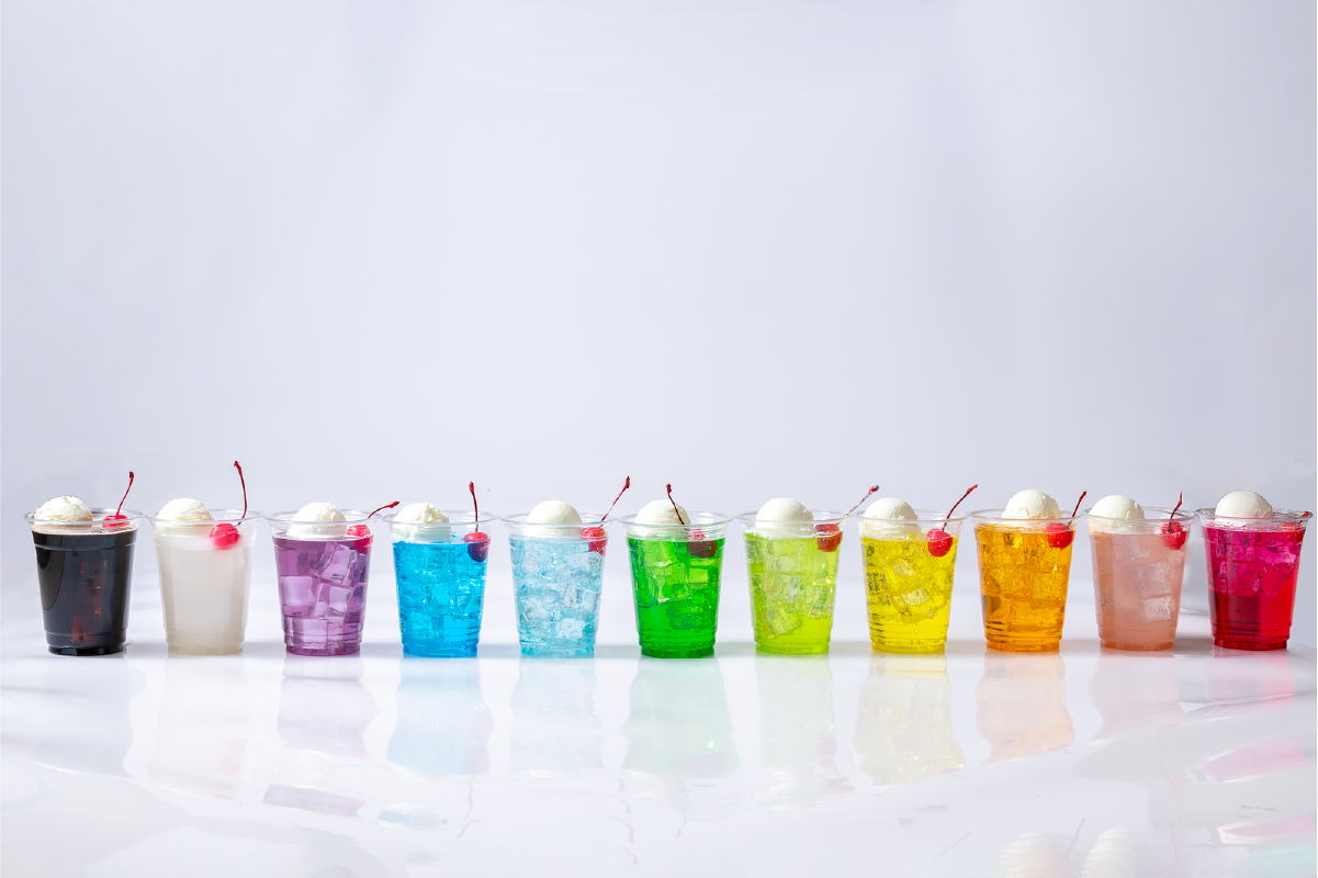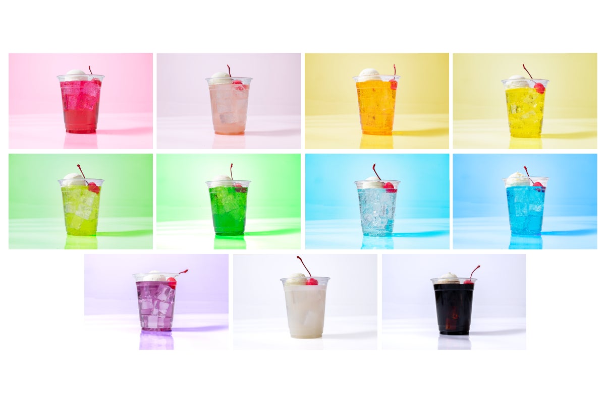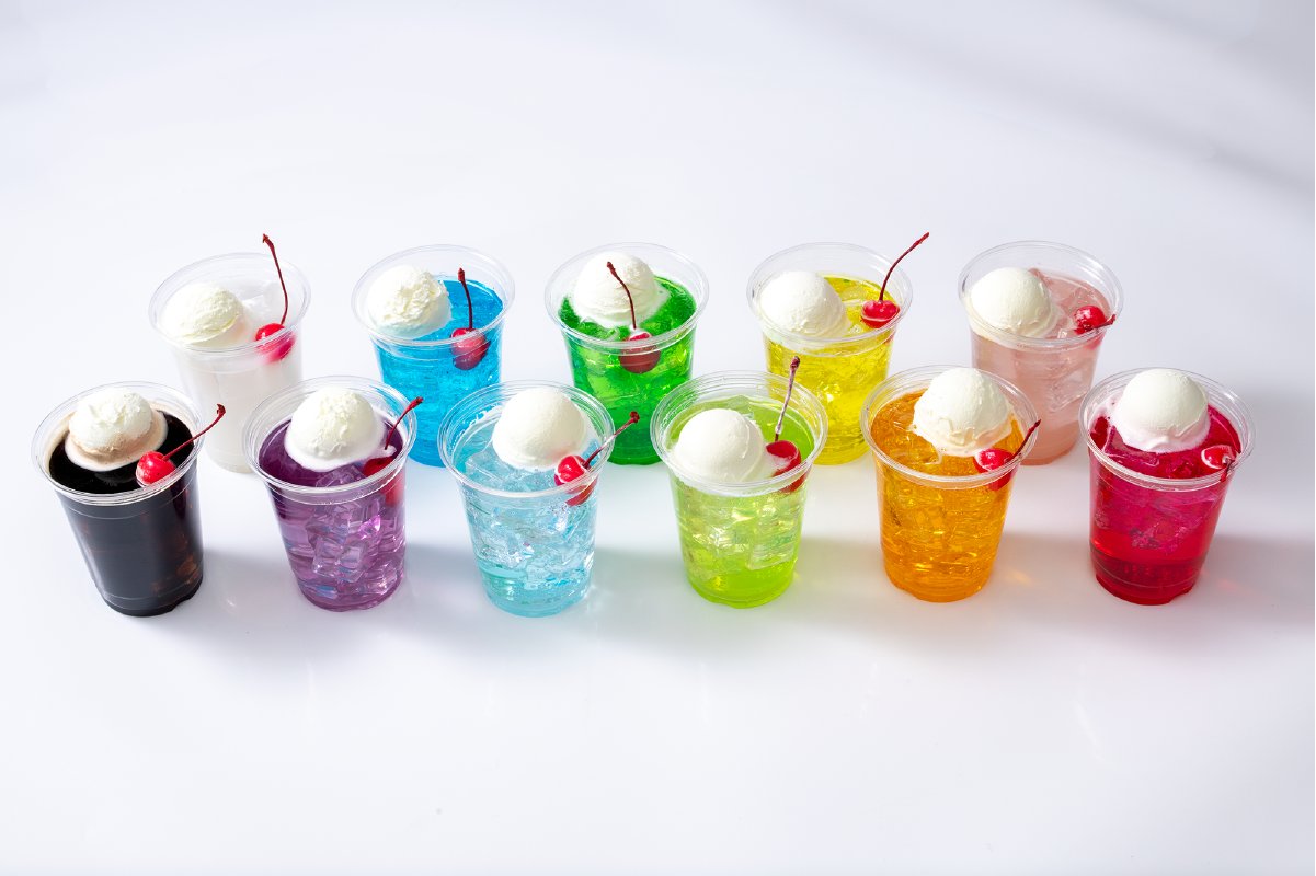 推しカラーがきっと見つかるカラーフロート。 カラーは、レッド、ピンク、オレンジ、イエロー、ライトグリーン、グリーン、スカイブルー、ブルー、パープル、ホワイト、ブラックの11種類。味もカラーによって異なります。